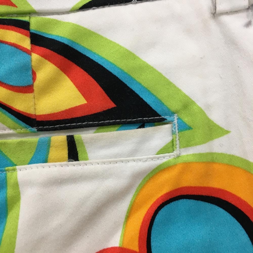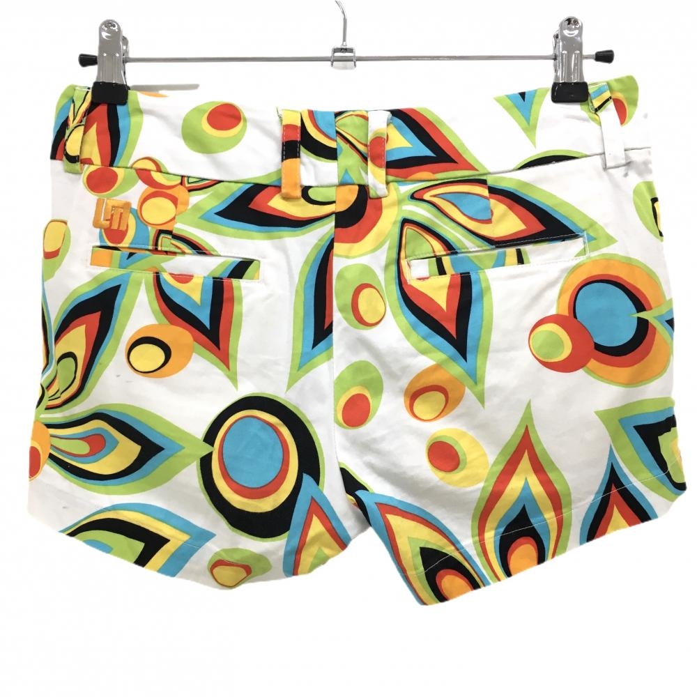ラウドマウス ショートパンツ 白×ライトグリーン 総柄 シャガデリックホワイト レディース US-2(L) ゴルフウェア LOUDMOUTH