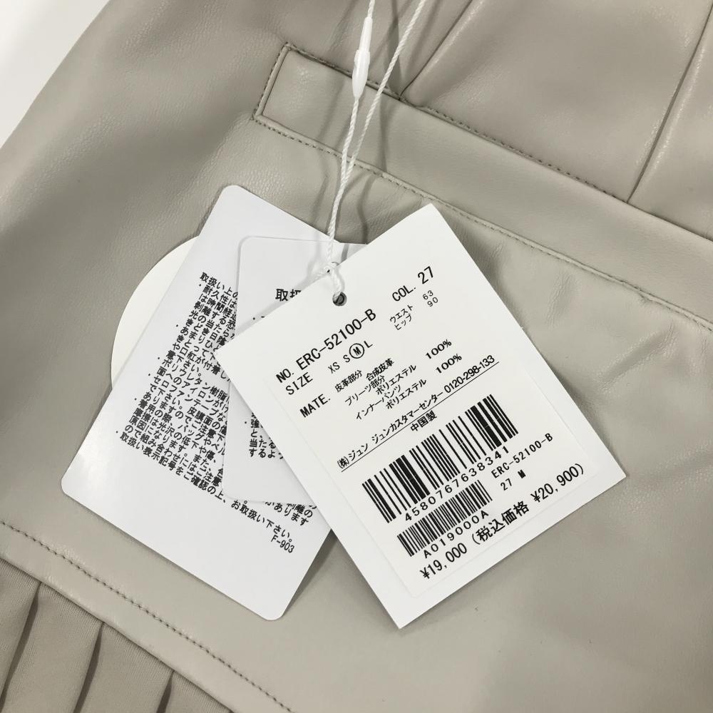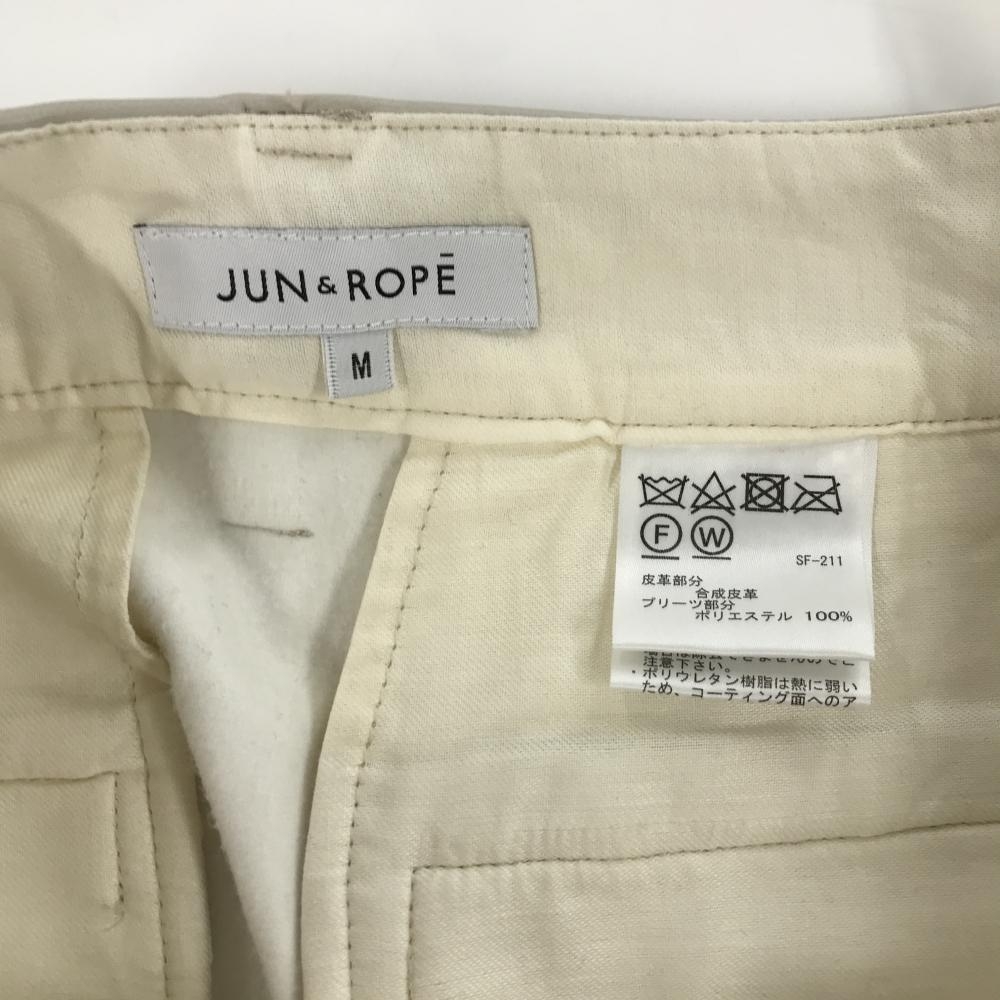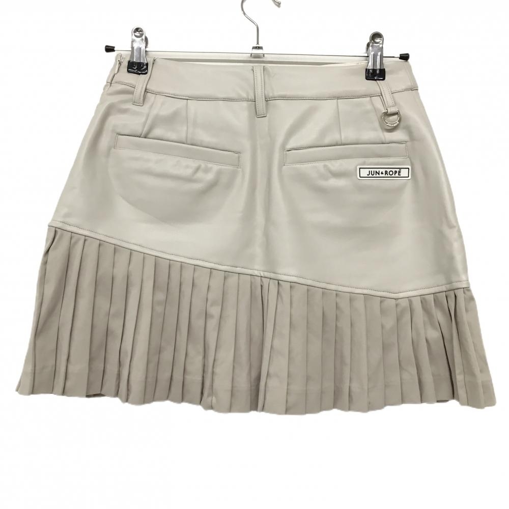 【新品】ジュンアンドロペ スカート ベージュ 一部合成皮革 裏一部微起毛 裾プリーツ レディース M ゴルフウェア JUN&ROPE