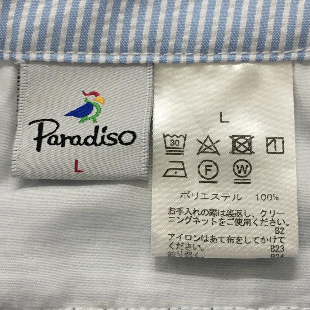 【超美品】パラディーゾ ハーフパンツ ライトブルー×白 ストライプ 刺しゅう総柄 サッカー生地 レディース L ゴルフウェア Paradiso