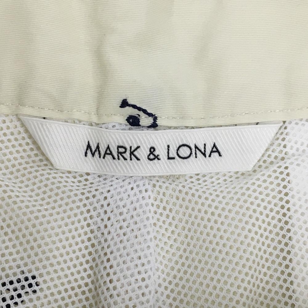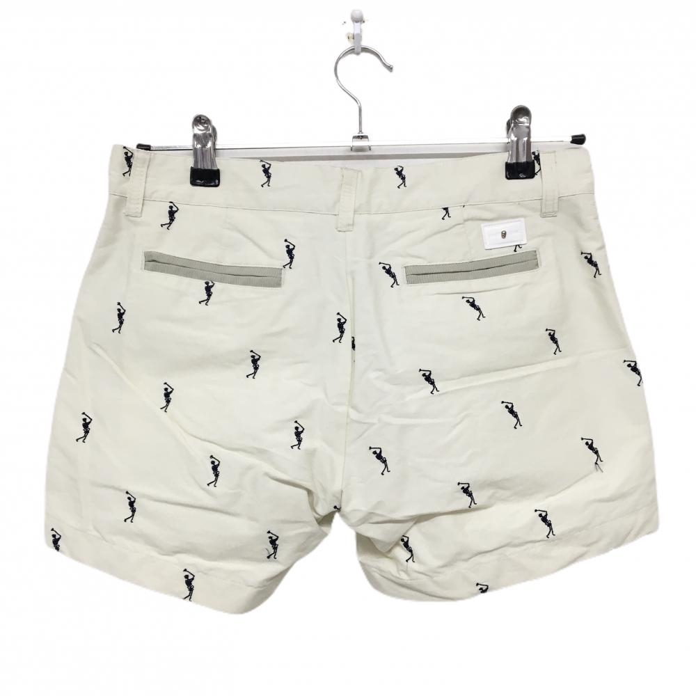 【美品】マークアンドロナ ショートパンツ アイボリー×ネイビー 刺しゅう総柄 裏地メッシュ レディース S ゴルフウェア MARK&LONA
