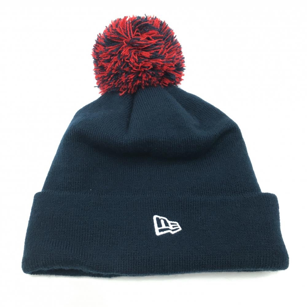 【超美品】ニューエラ×ビームスゴルフ ニット帽 ネイビー×レッド ボンボン付 ゴルフウェア New Era