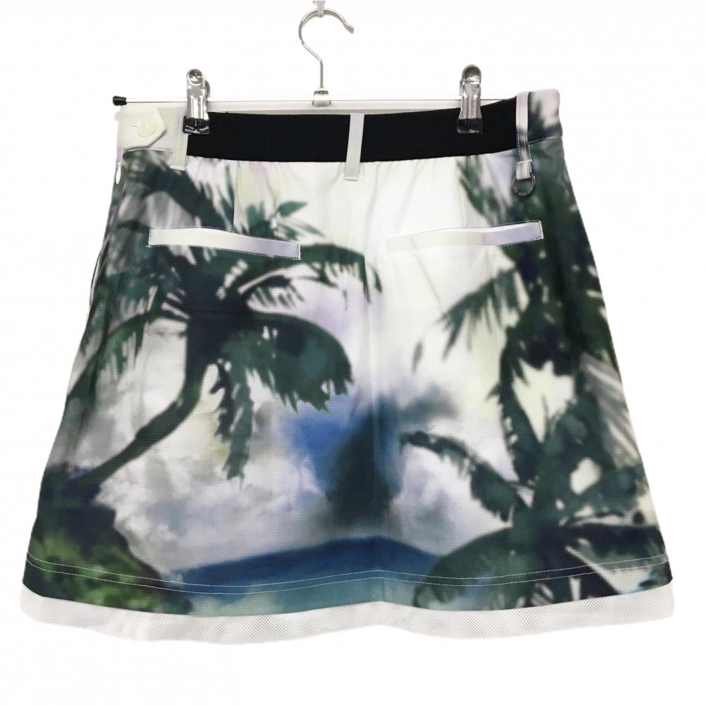 【新品】トミーヒルフィガーゴルフ スカート 白×グリーン系 総柄 ヤシの木 メッシュ調 レディース LL ゴルフウェア Tommy Hilfiger Golf