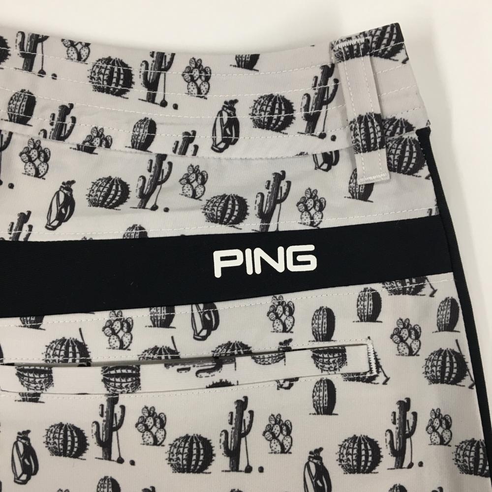 【美品】ピン スカート ライトグレー×黒 サボテン柄 薄手 レディース S ゴルフウェア PING