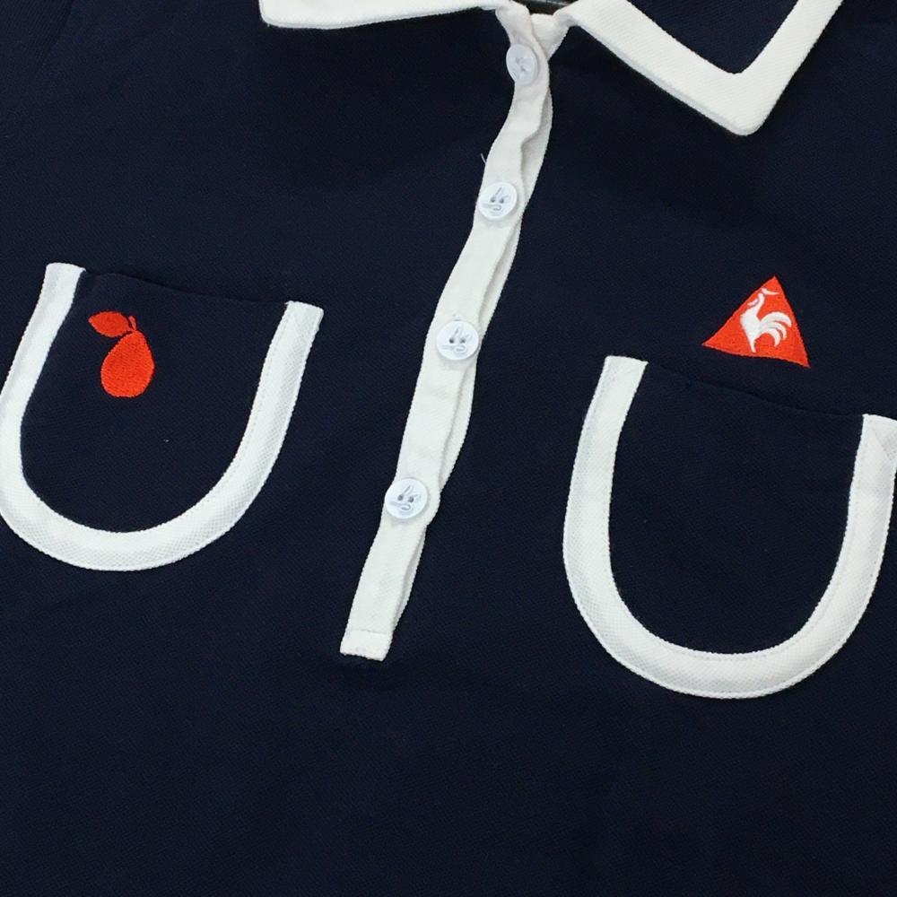 【美品】ルコックゴルフ 半袖ポロシャツ ネイビー×白 パイピング レディース M ゴルフウェア le coq sportif