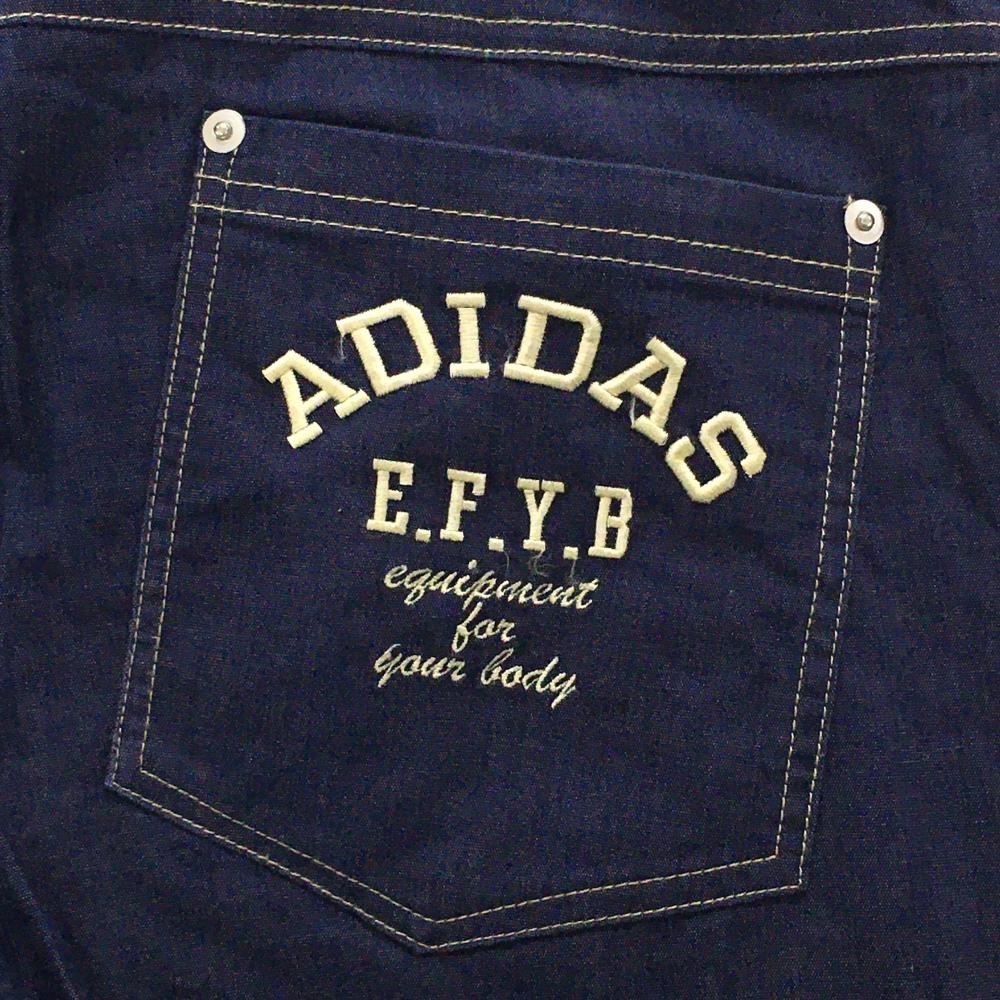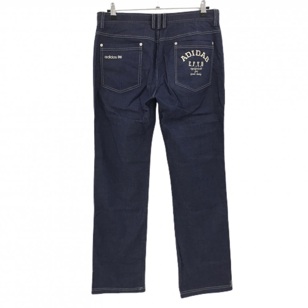 【美品】アディダス パンツ 杢ネイビー 後ろロゴ刺しゅう デニム調 ステッチ メンズ 85 ゴルフウェア adidas