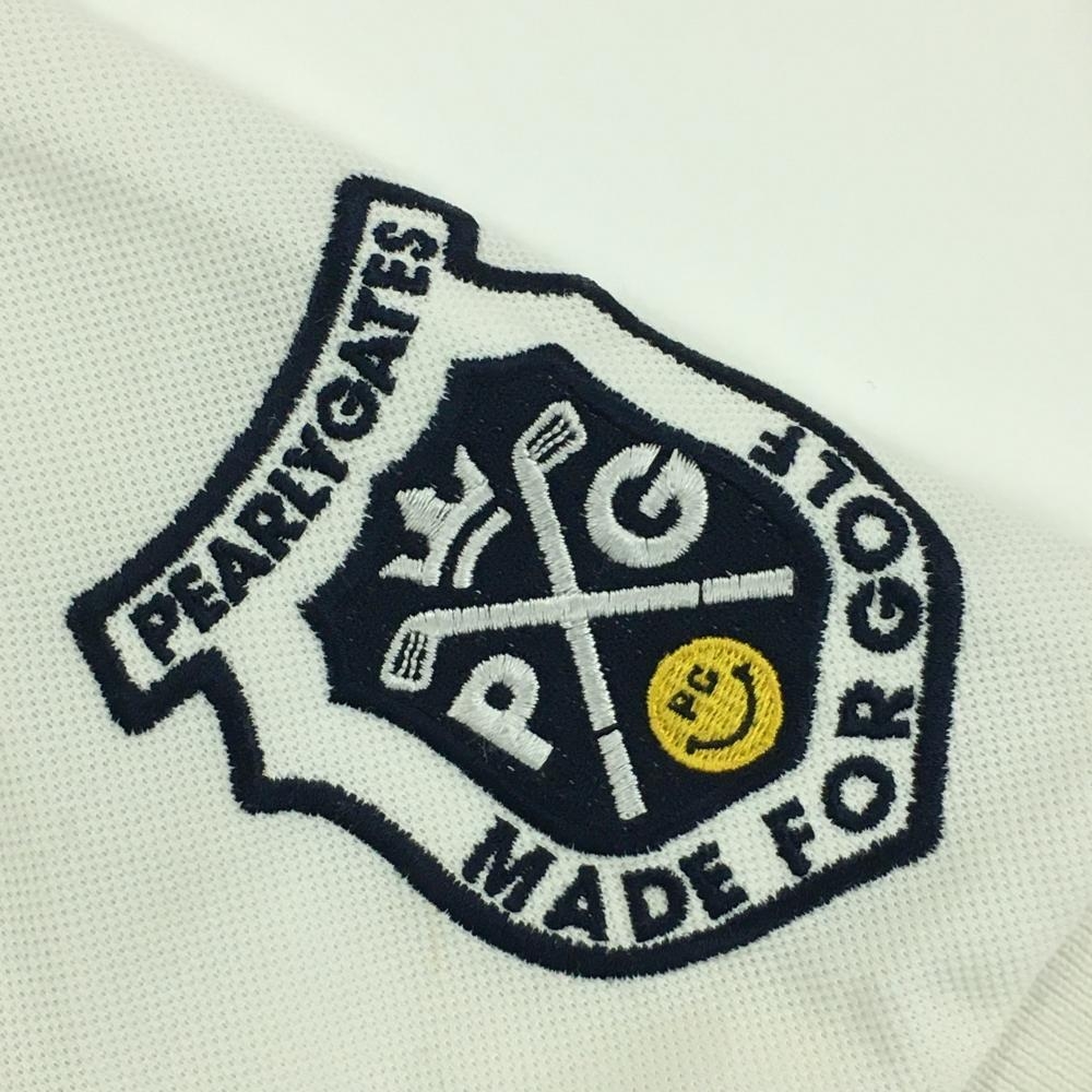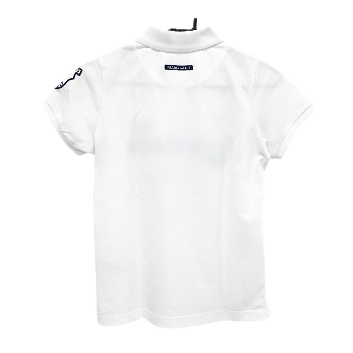 パーリーゲイツ 半袖ポロシャツ 白×ネイビー フロントロゴ レディース 0(S) ゴルフウェア PEARLY GATES