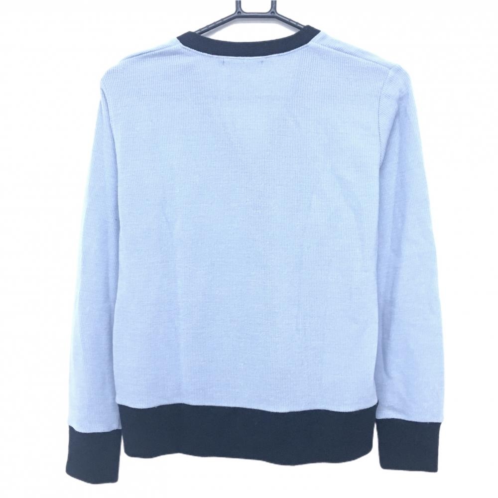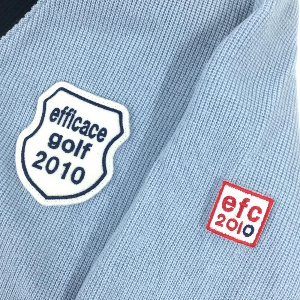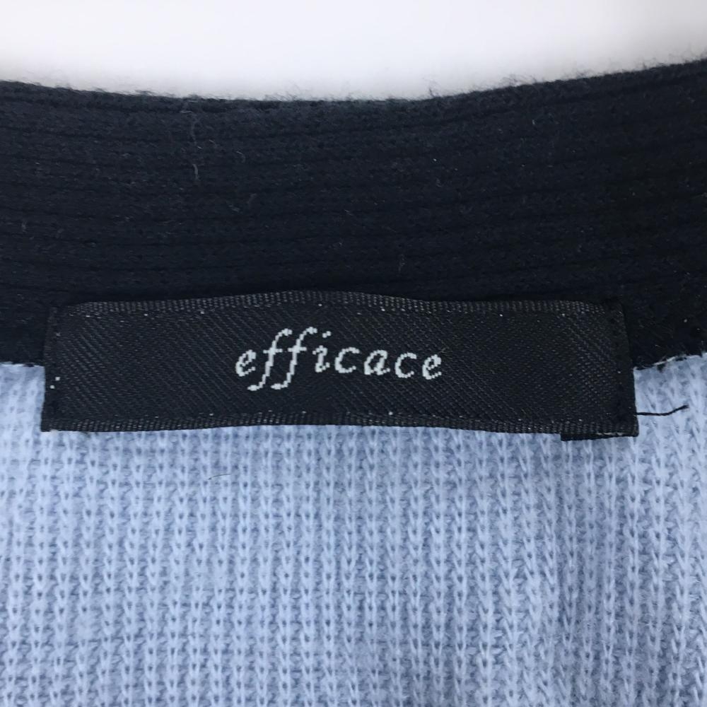 【美品】エフィカス ニットカーディガン ライトブルー×黒 ワッペン レディース L ゴルフウェア efficace