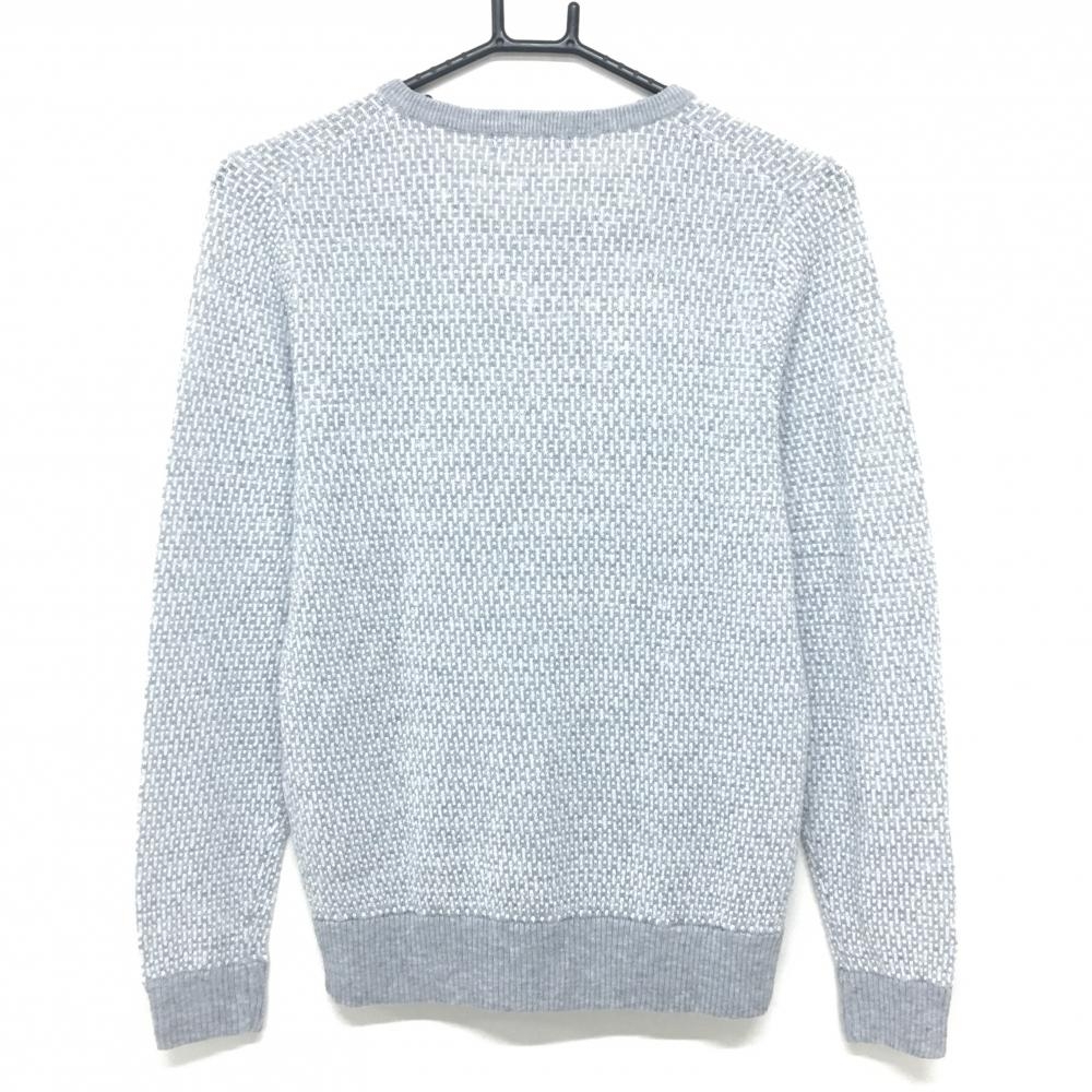 【超美品】エフィカス セーター グレー×白 Vネック 胸ポケット ニット レディース M ゴルフウェア efficace