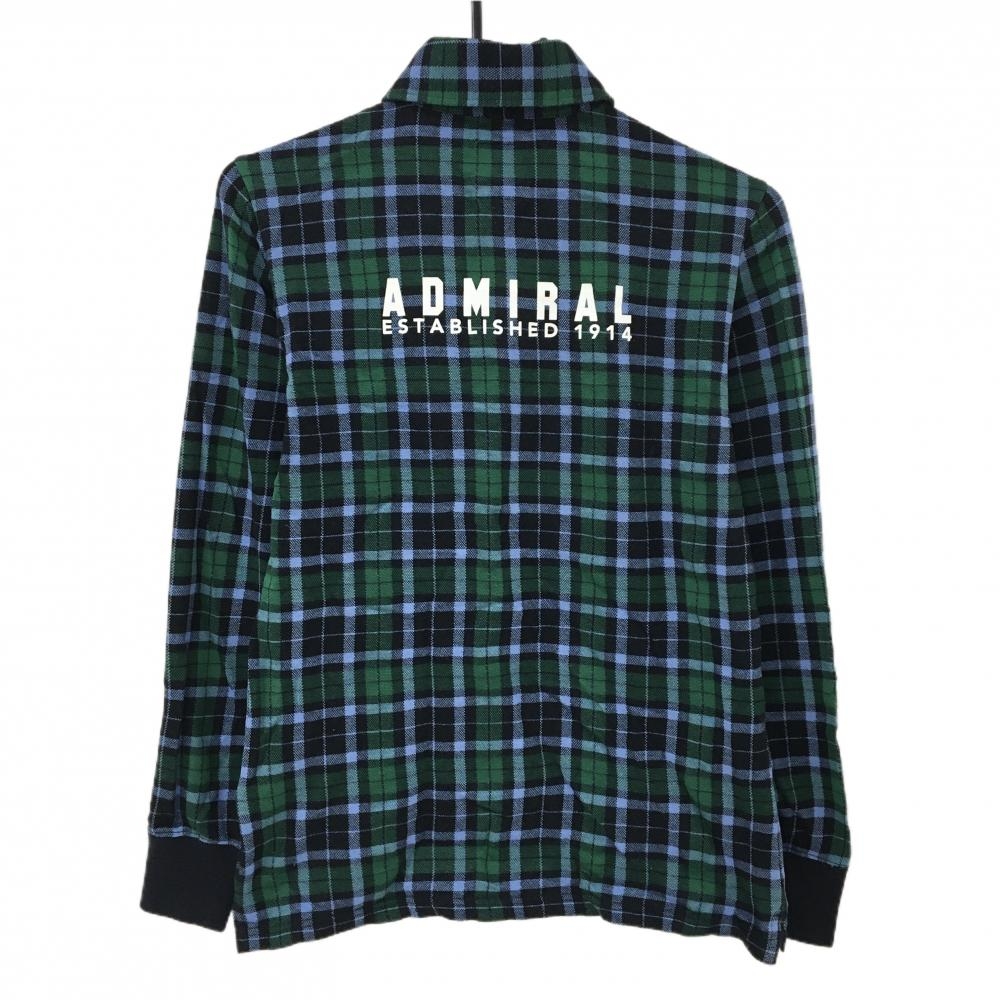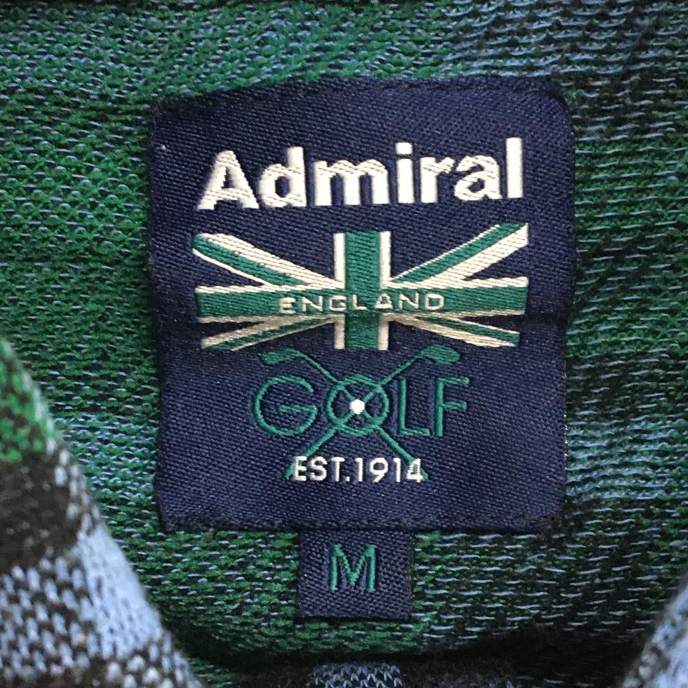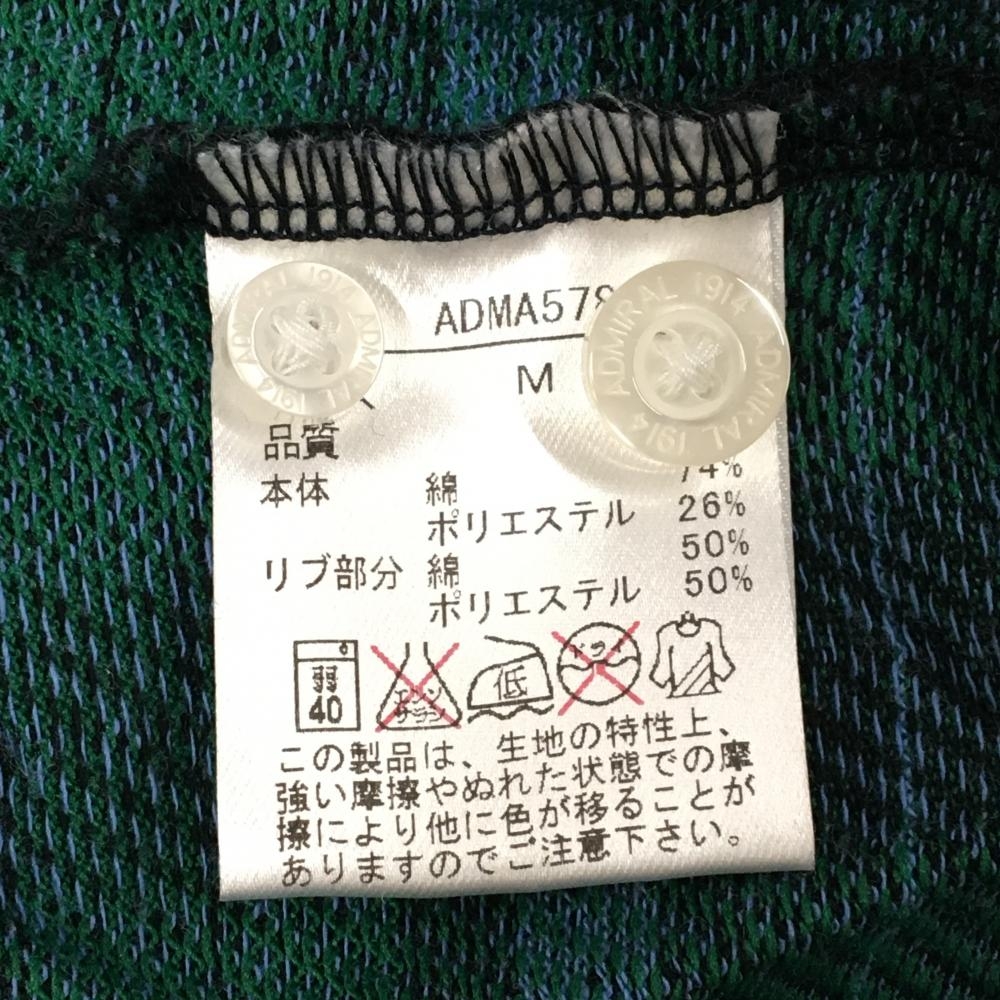 【美品】アドミラル 半袖ポロシャツ ネイビー×グリーン チェック ボタンダウン バックロゴ メンズ M ゴルフウェア Admiral