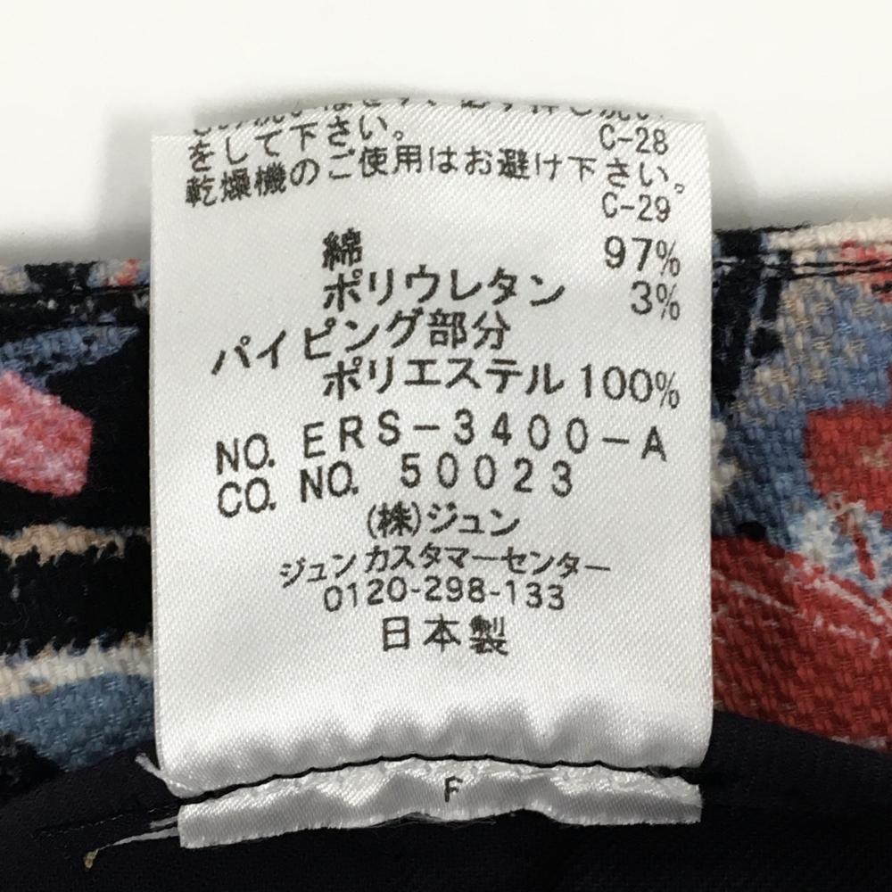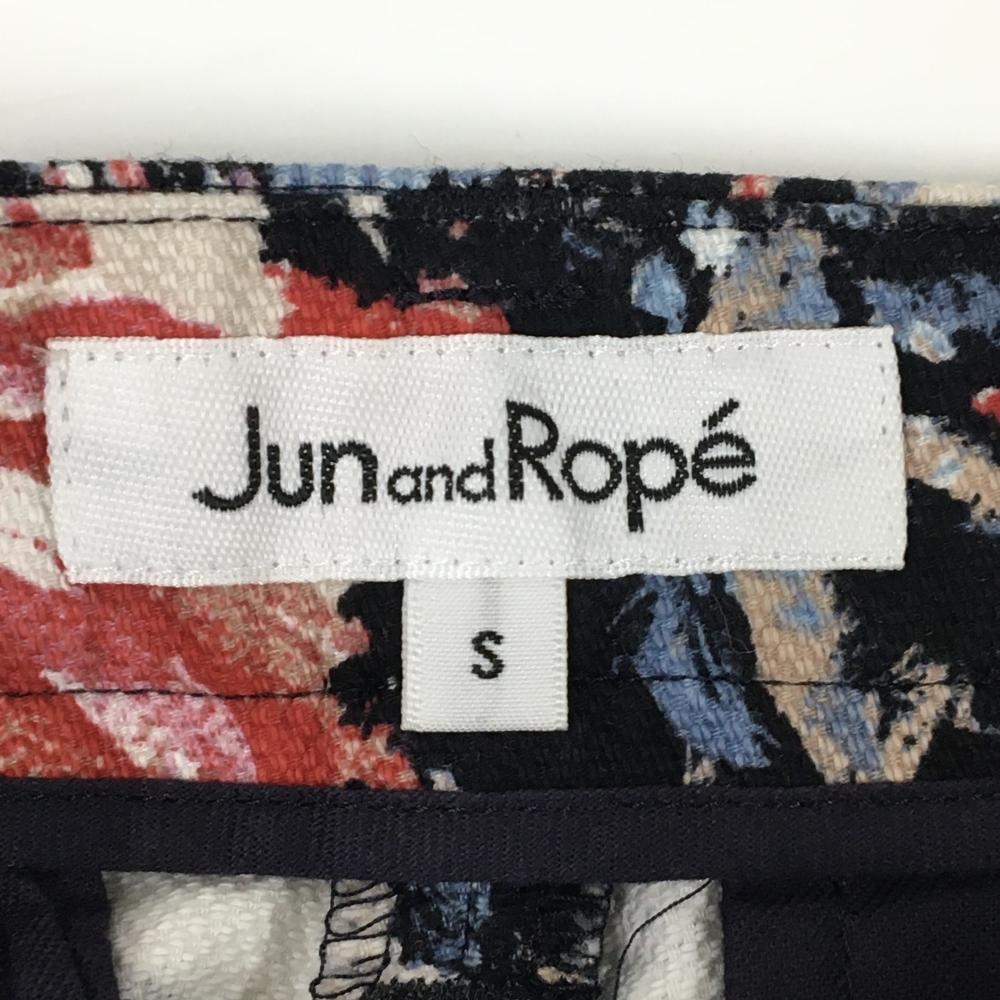 【美品】ジュンアンドロペ ショートパンツ 黒×ライトブルー×レッド 花柄 ストレッチ レディース S ゴルフウェア JUN&ROPE