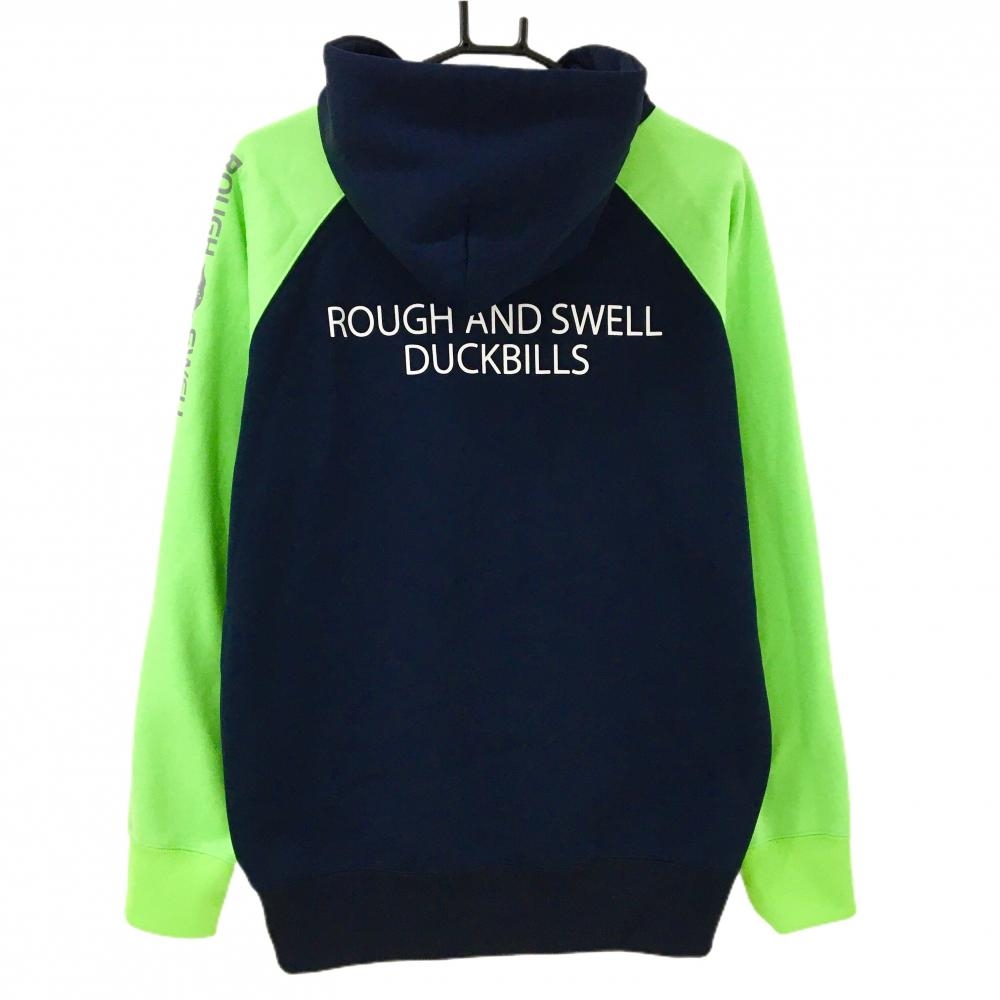 【美品】ラフアンドスウェル パーカー ネイビー×蛍光グリーン 裏起毛 トレーナー メンズ L ゴルフウェア rough&swell