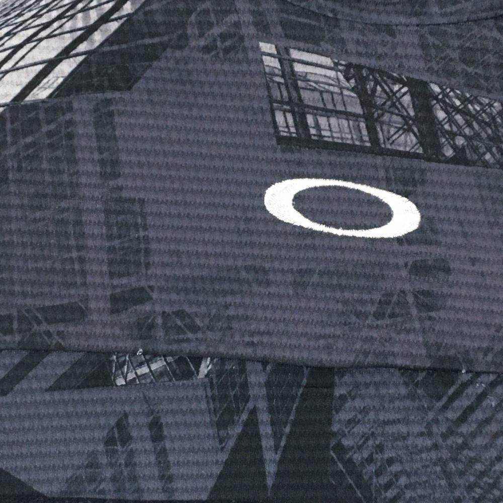 オークリー 半袖ハイネックシャツ ダークグレー×黒 総柄 ロゴ刺しゅう メンズ XL ゴルフウェア Oakley