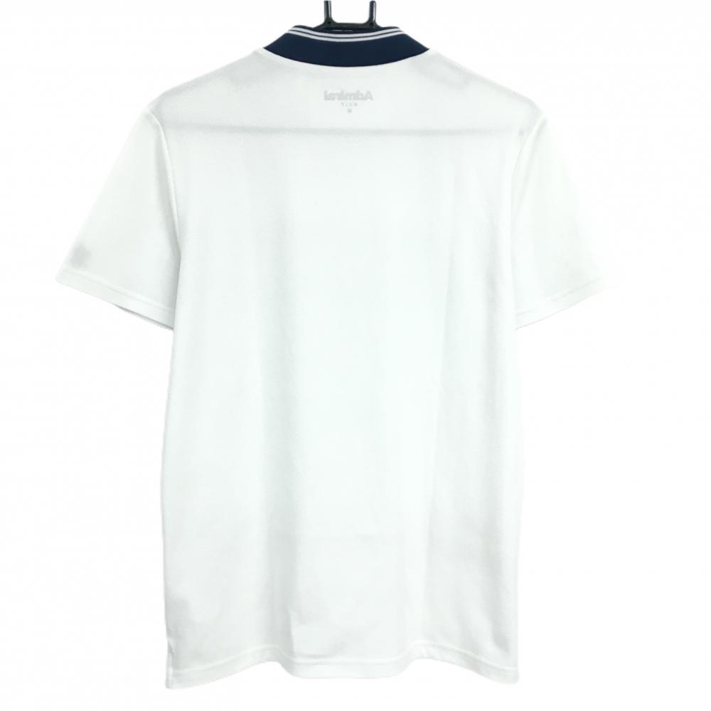 アドミラル 半袖ハイネックシャツ 白×ネイビー フロントロゴ メンズ L ゴルフウェア Admiral
