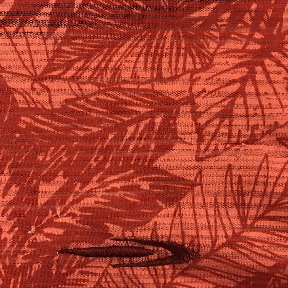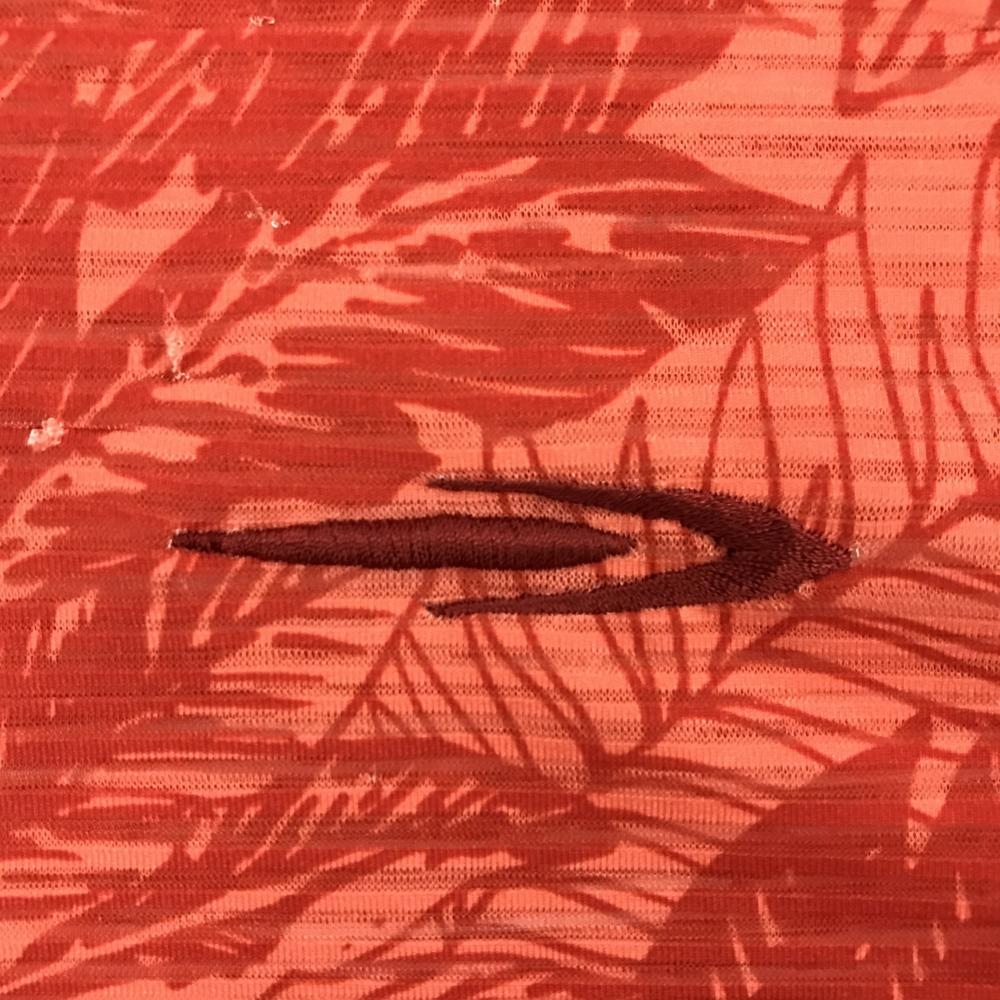 ティゴラ 半袖ポロシャツ ライトオレンジ×レッドオレンジ系 総柄 リーフ 胸ロゴ メンズ LL ゴルフウェア TIGORA