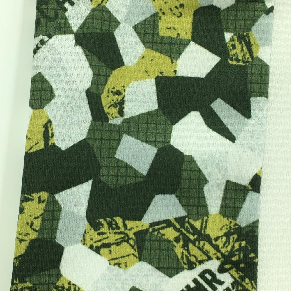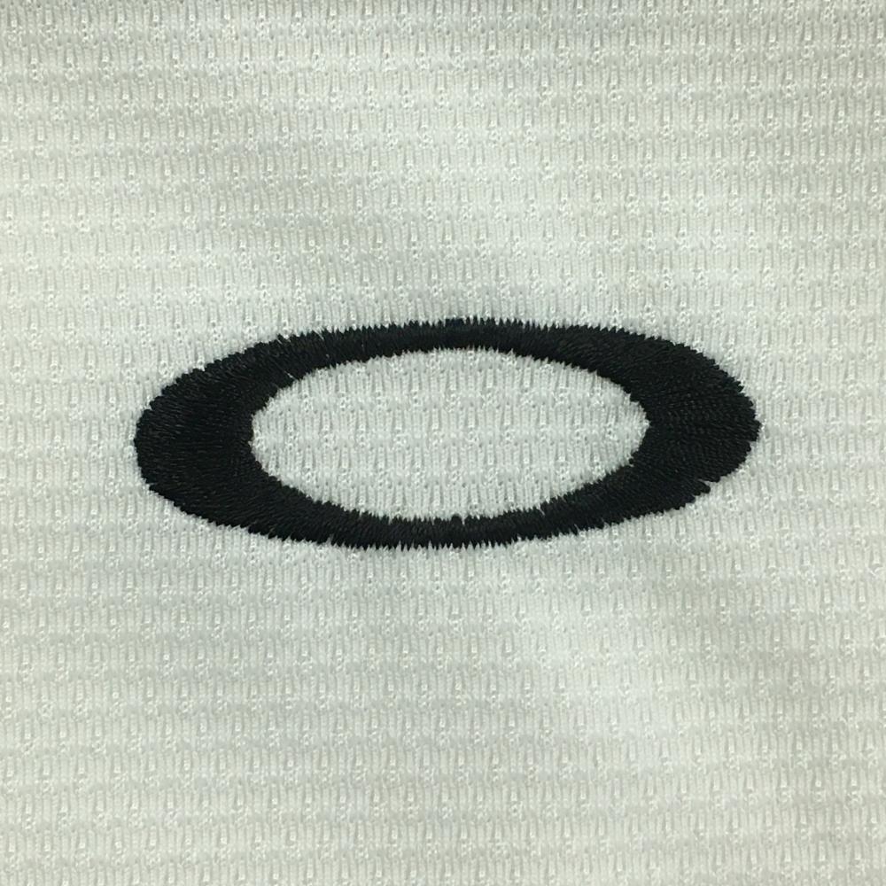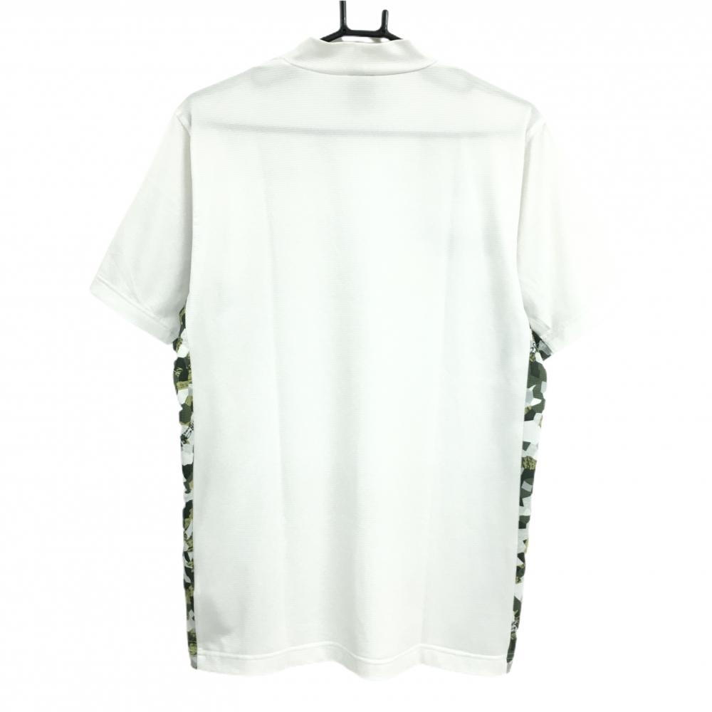 【超美品】オークリー 半袖ハイネックシャツ 白×カーキ 袖下・サイド総柄 ロゴ刺しゅう メンズ L ゴルフウェア Oakley