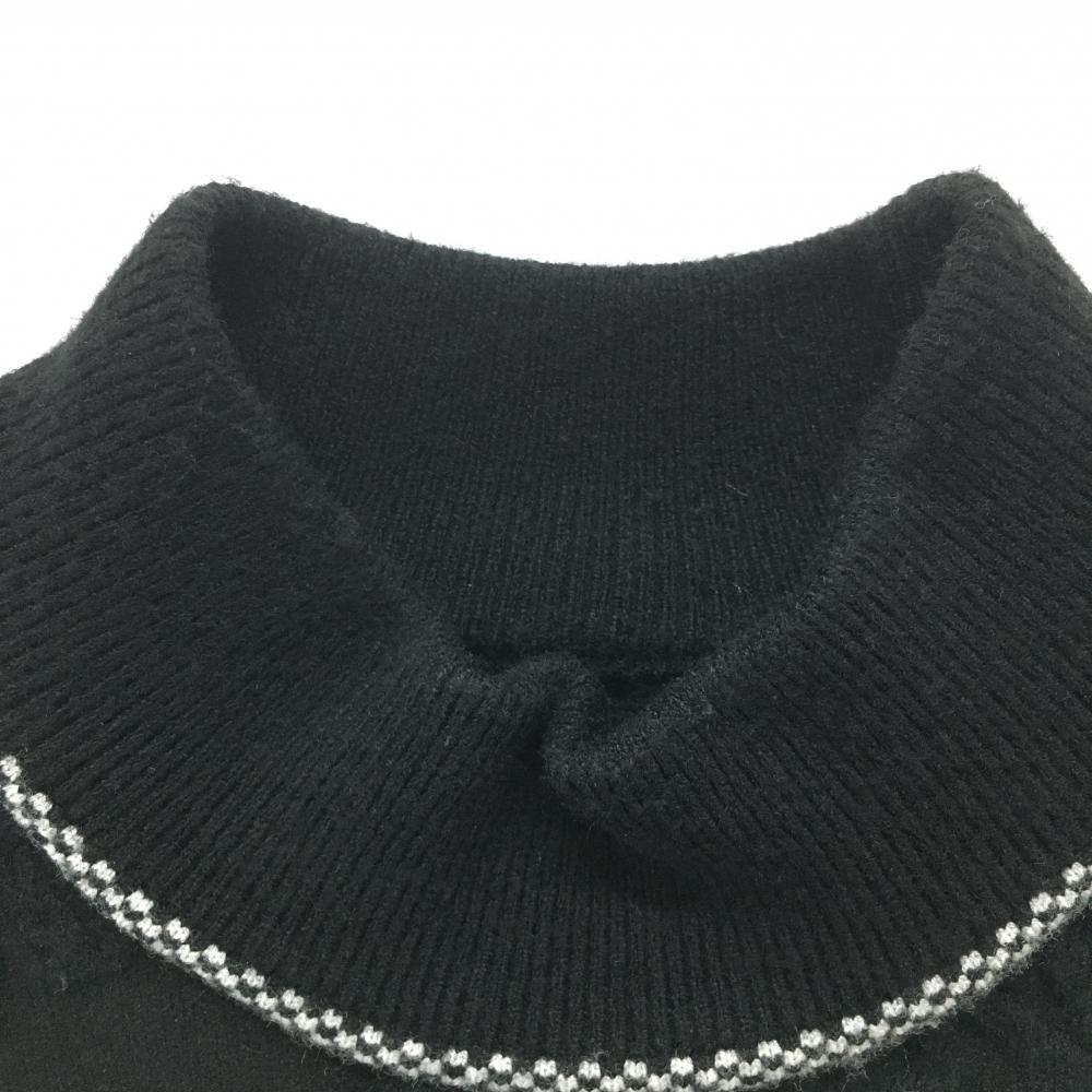 【美品】エースアンドレア 半袖ハイネックセーター 黒 ロゴ総柄織生地 レディース 158T ゴルフウェア ACEANDRARE