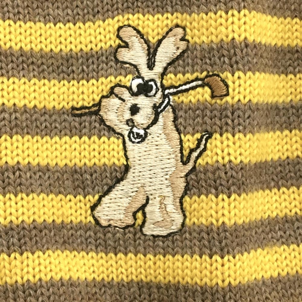 【美品】MUスポーツ セーター イエロー×ブラウン ボーダー 後ろポケット ニット レディース 40(M) ゴルフウェア M・U SPORTS