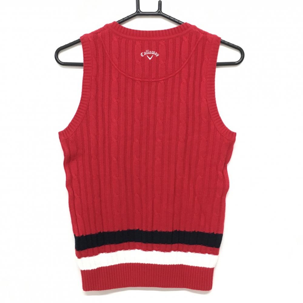 【美品】キャロウェイ ニットベスト レッド×ネイビー Vネック ケーブル編み レディース M ゴルフウェア Callaway