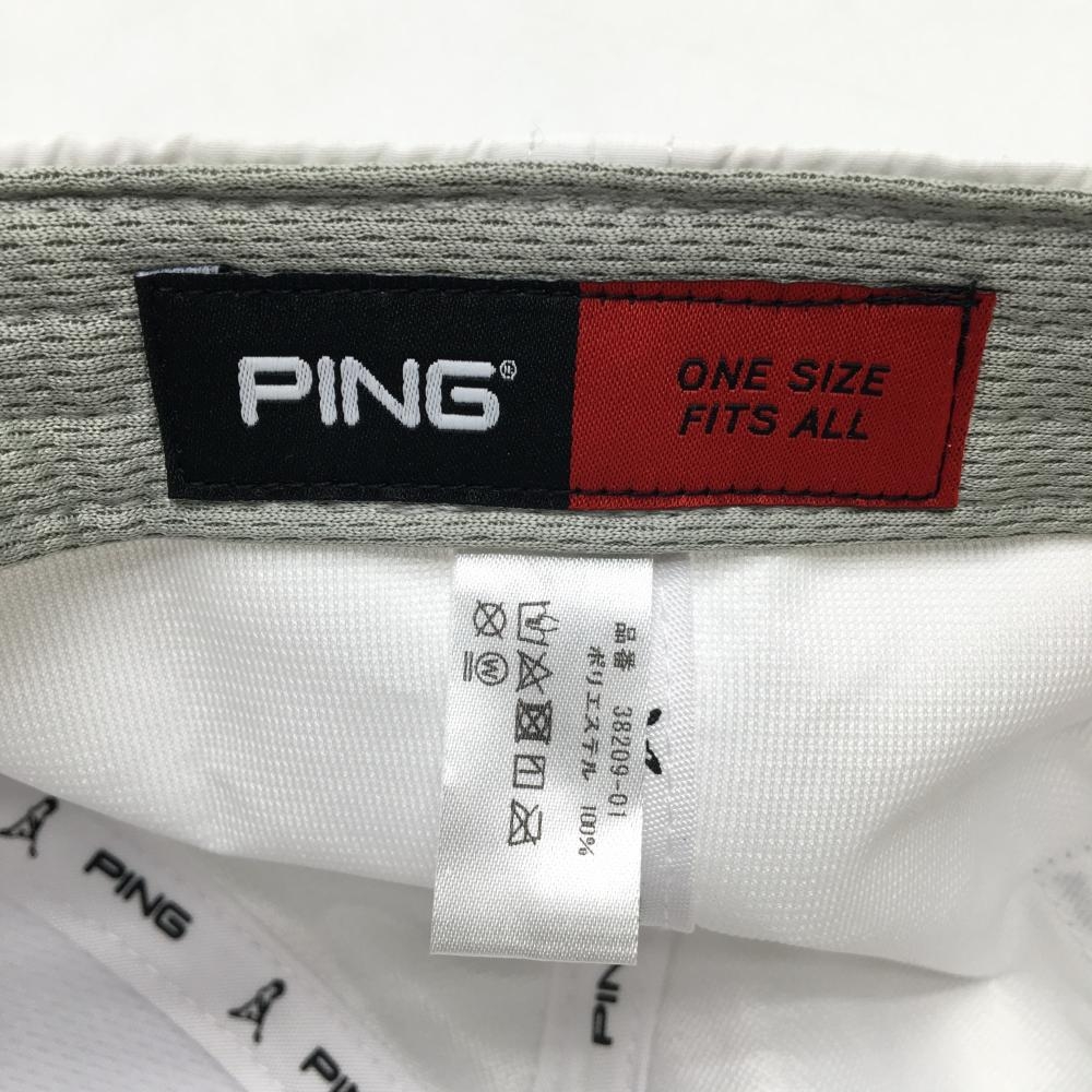 【美品】ピン キャップ 白×黒 立体ロゴ ONE SIZE FITS ALL ゴルフウェア PING