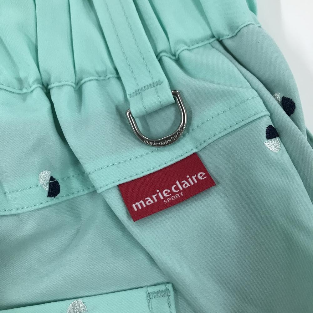 【新品】マリクレール レギンス付スカート ライトグリーン×黒 刺しゅう総柄 ストレッチ 撥水 レディース M ゴルフウェア marie claire