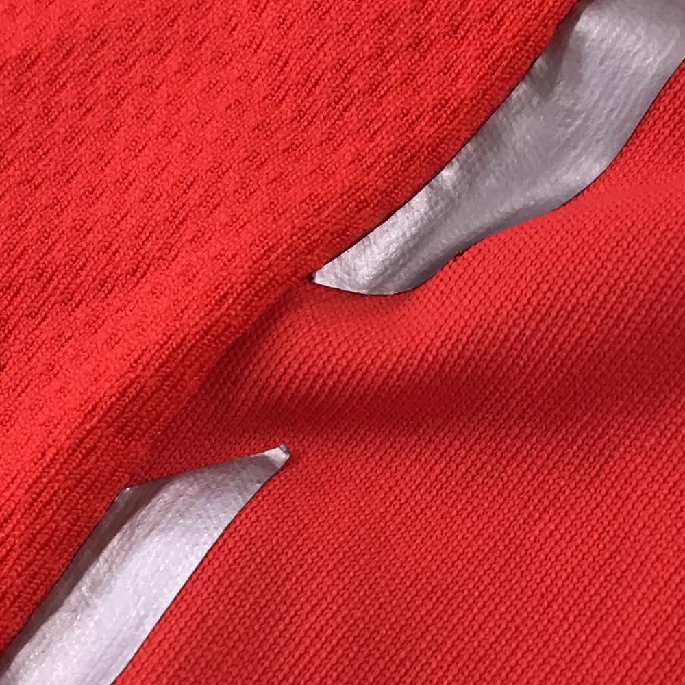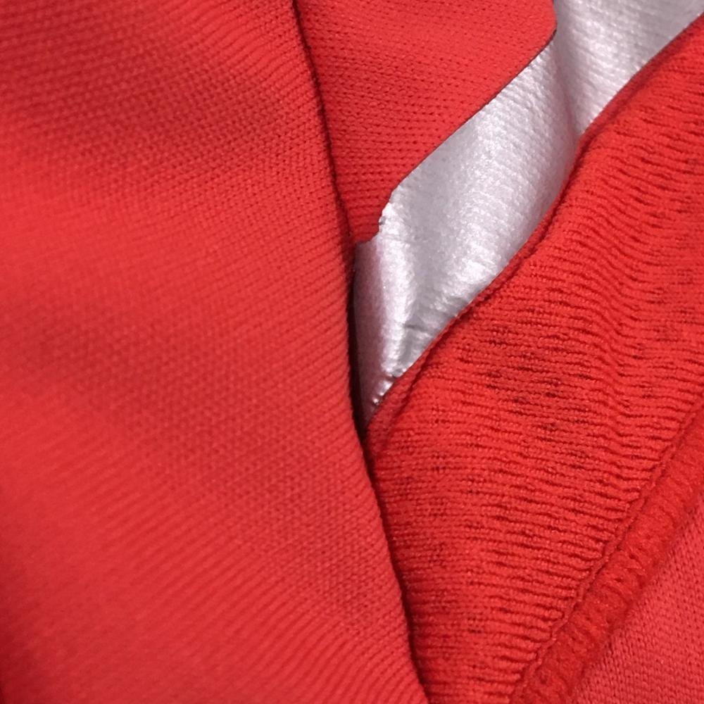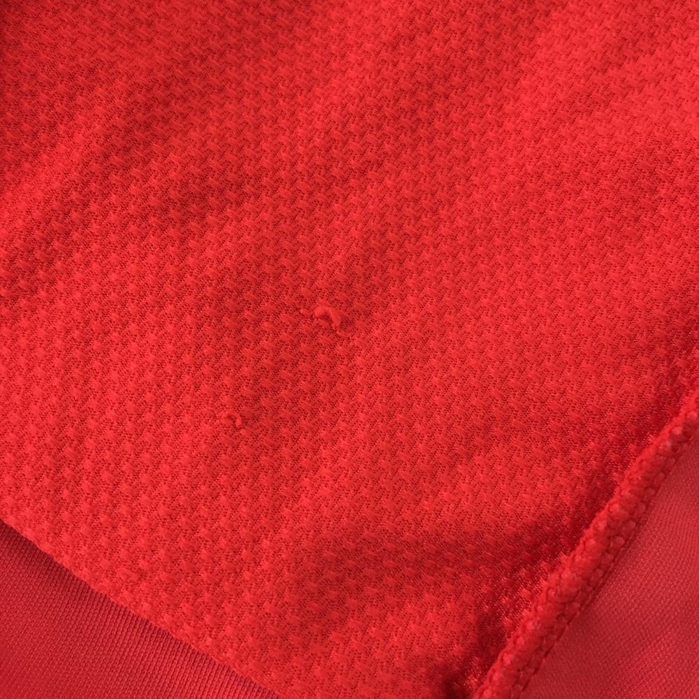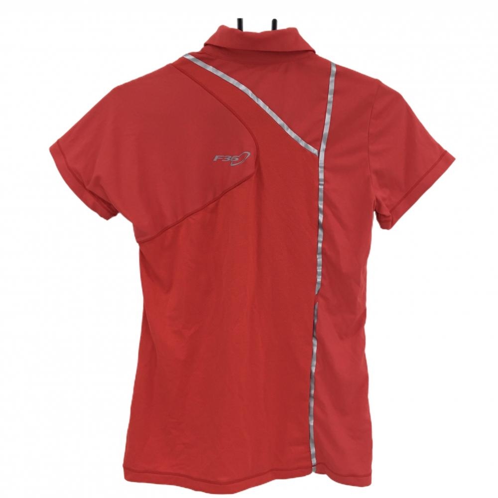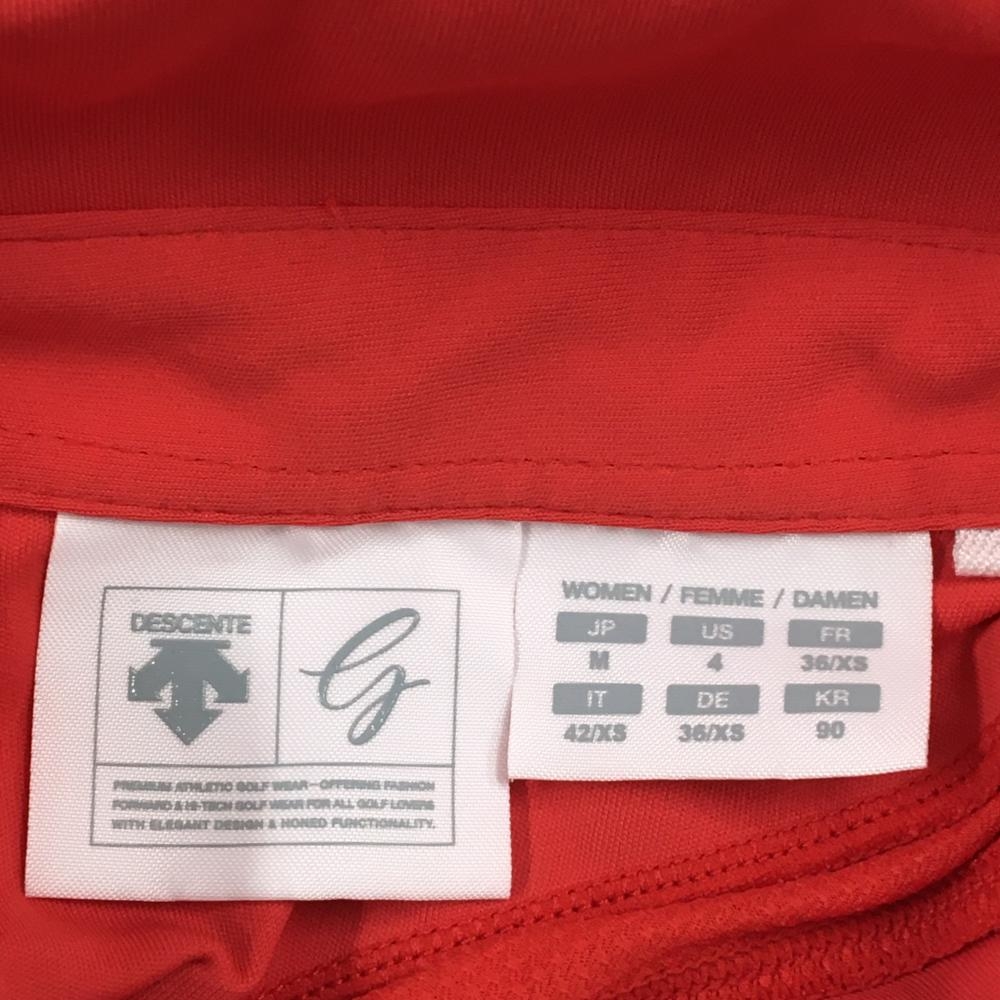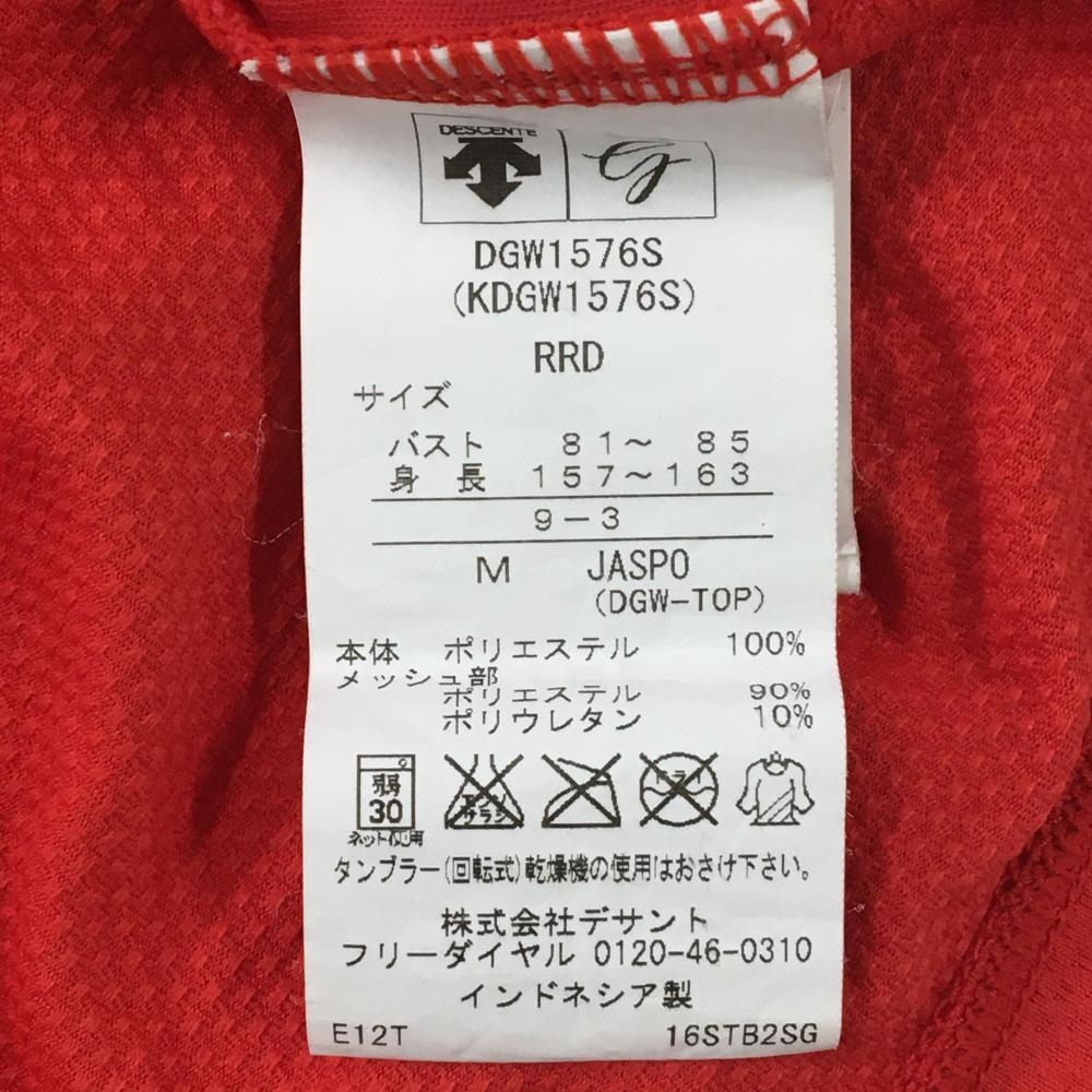 【超美品】デサントゴルフ 半袖ポロシャツ レッド×シルバー スナップボタン 肩ロゴ レディース M ゴルフウェア DESCENTE