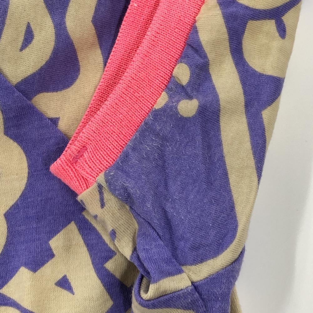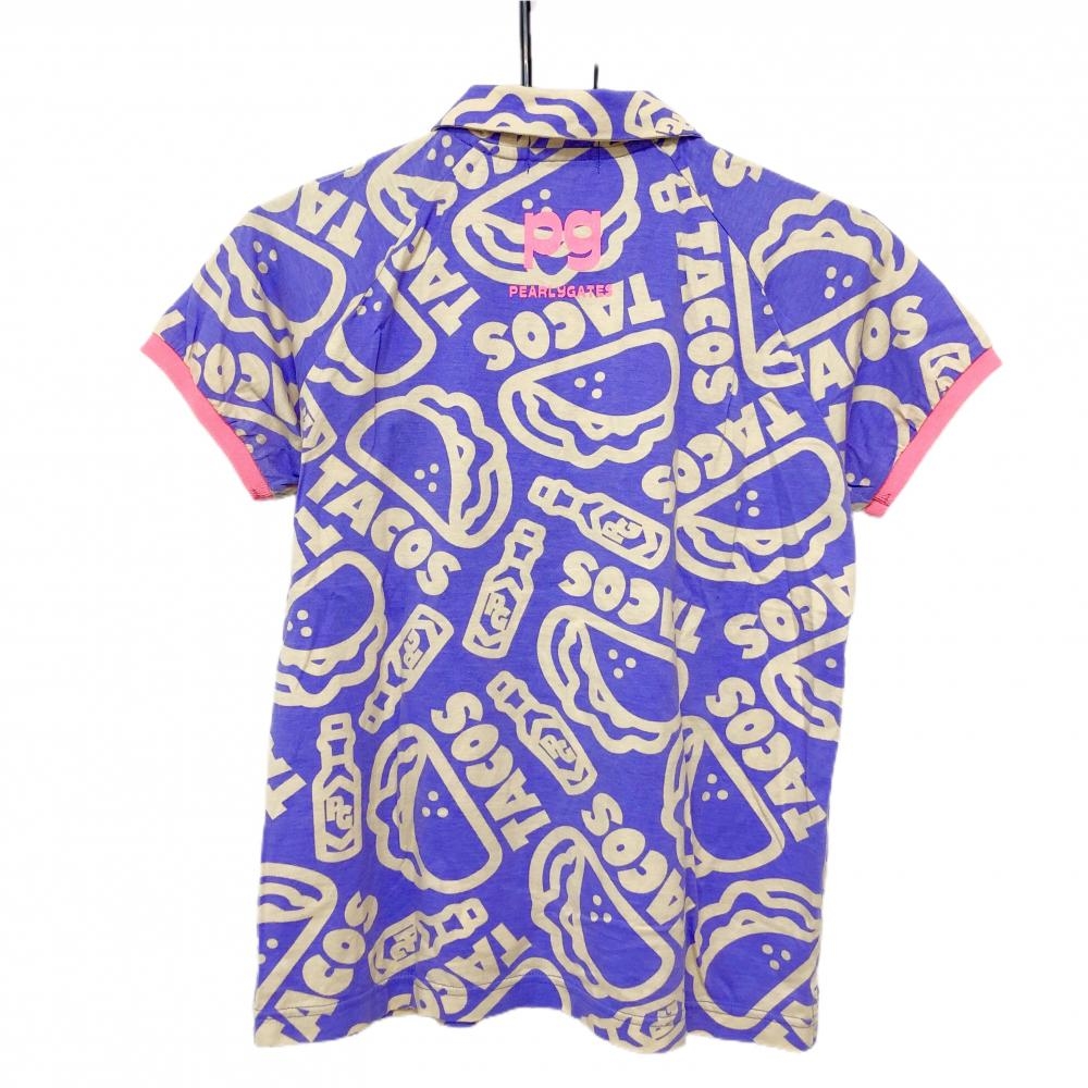 【美品】パーリーゲイツ 半袖ポロシャツ ライトパープル×ベージュ 総柄 袖口蛍光ピンク レディース 0(S) ゴルフウェア PEARLY GATES