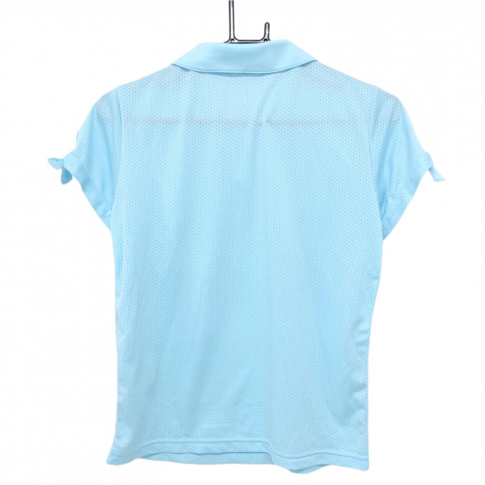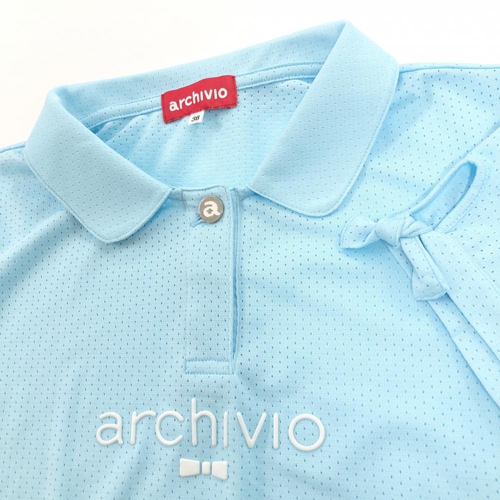 【美品】アルチビオ 半袖ポロシャツ ライトブルー×白 メッシュ生地 袖リボン フロントロゴ レディース 38(M) ゴルフウェア archivio