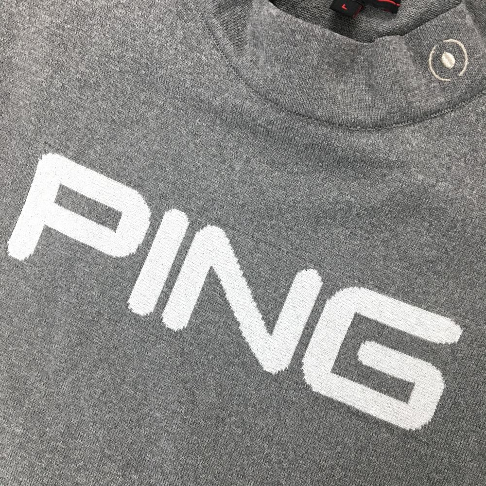 【超美品】ピン 半袖ハイネックセーター グレー ロゴラメ ニット レディース L ゴルフウェア PING