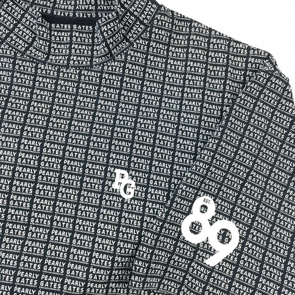 【超美品】パーリーゲイツ 半袖ハイネックシャツ 黒×白 ロゴ総柄 メンズ 5(L) ゴルフウェア PEARLY GATES