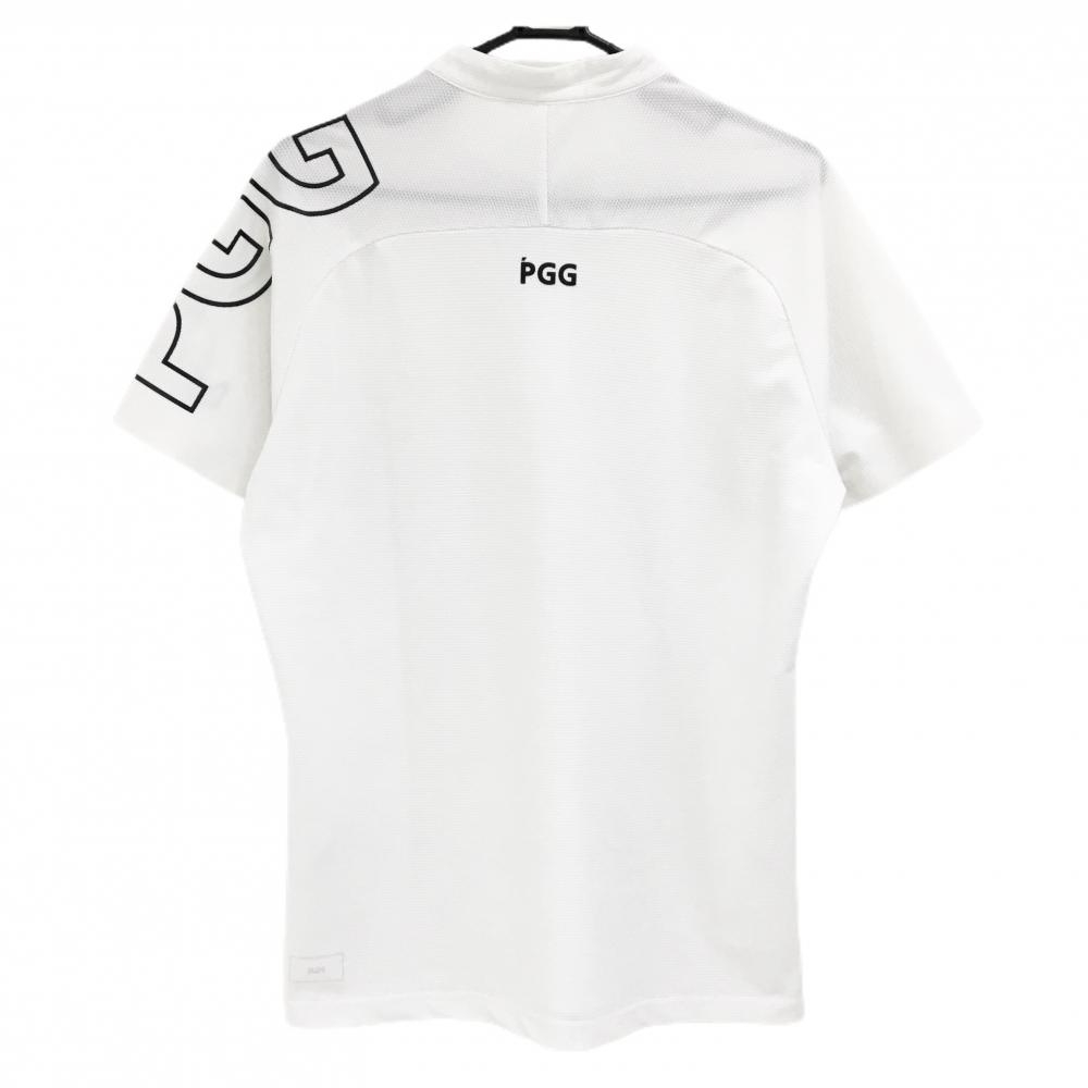 【超美品】PGGパーリーゲイツ 半袖シャツ 白×黒 織生地 ハーフジップ メンズ 5(L) ゴルフウェア PEARLY GATES