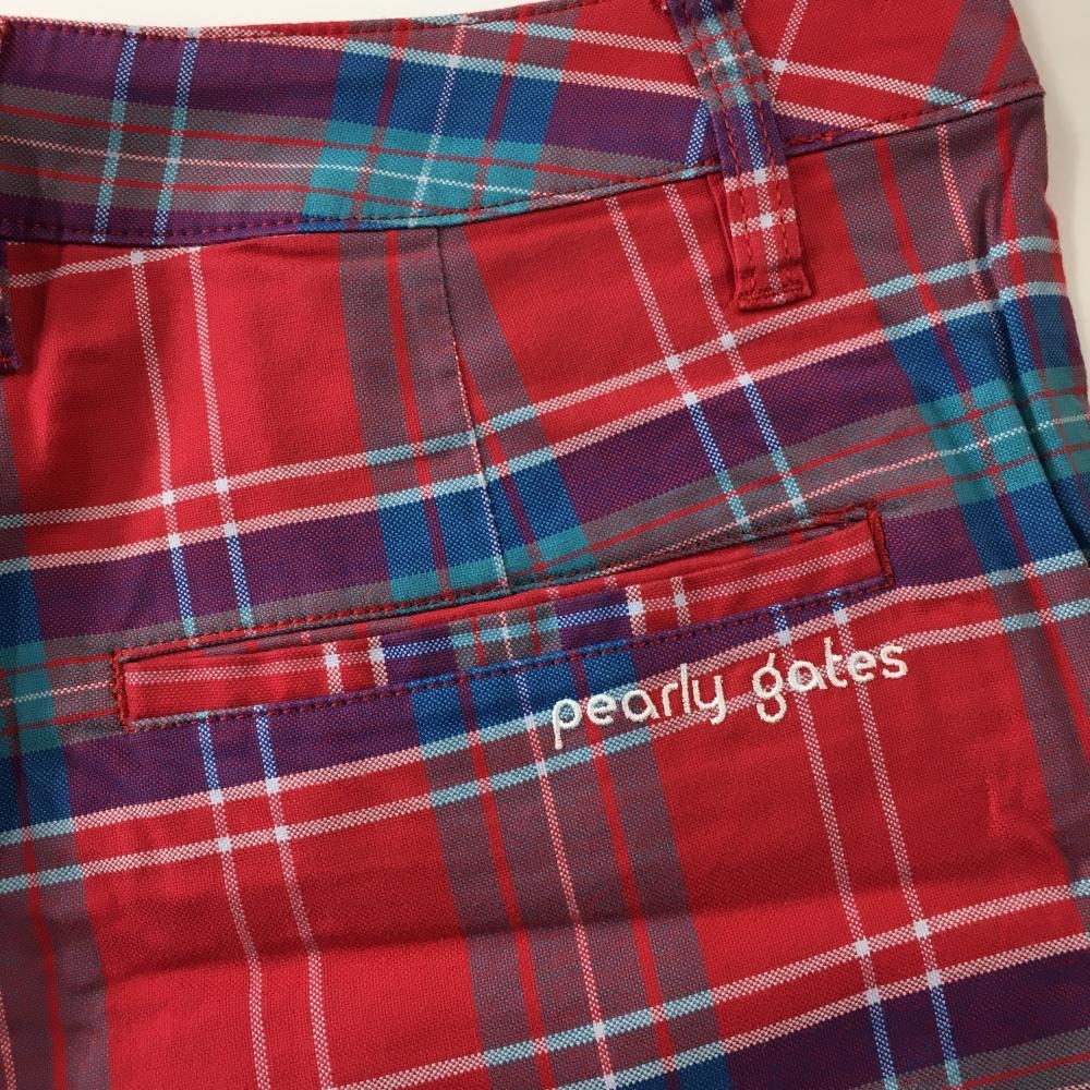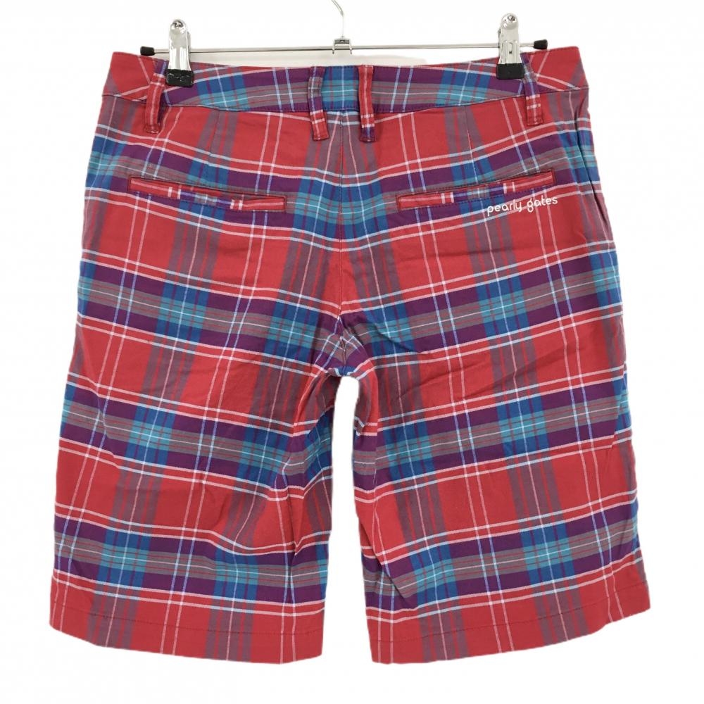 【美品】パーリーゲイツ ハーフパンツ レッド×ブルー×パープル チェック レディース 2(L) ゴルフウェア PEARLY GATES