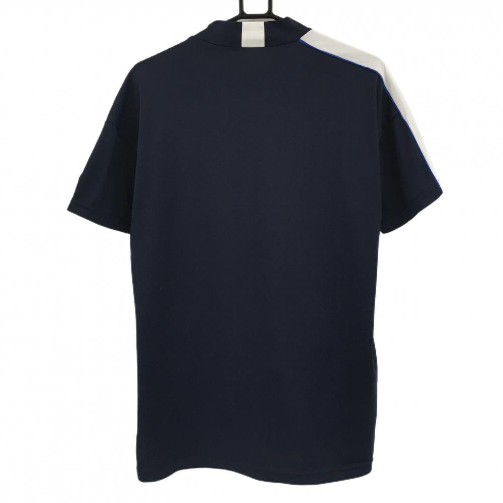 【美品】ルコックゴルフ 半袖ハイネックシャツ ネイビー×ブルー×白 胸ロゴ メンズ LL ゴルフウェア 2024年モデル le coq sportif