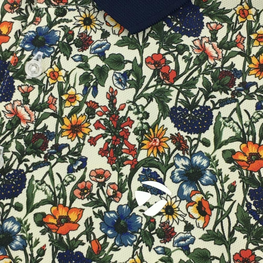 【超美品】テーラーメイド 半袖ポロシャツ ライトベージュ×マルチカラー 花柄 LIBERTY メンズ O ゴルフウェア TaylorMade