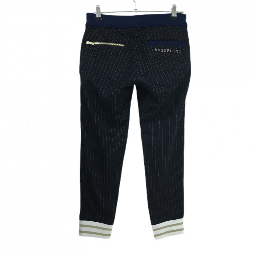 【美品】ラッセルノ 半端丈パンツ ネイビー×白 ストライプ ウール混 レディース 1(M) ゴルフウェア RUSSELUNO