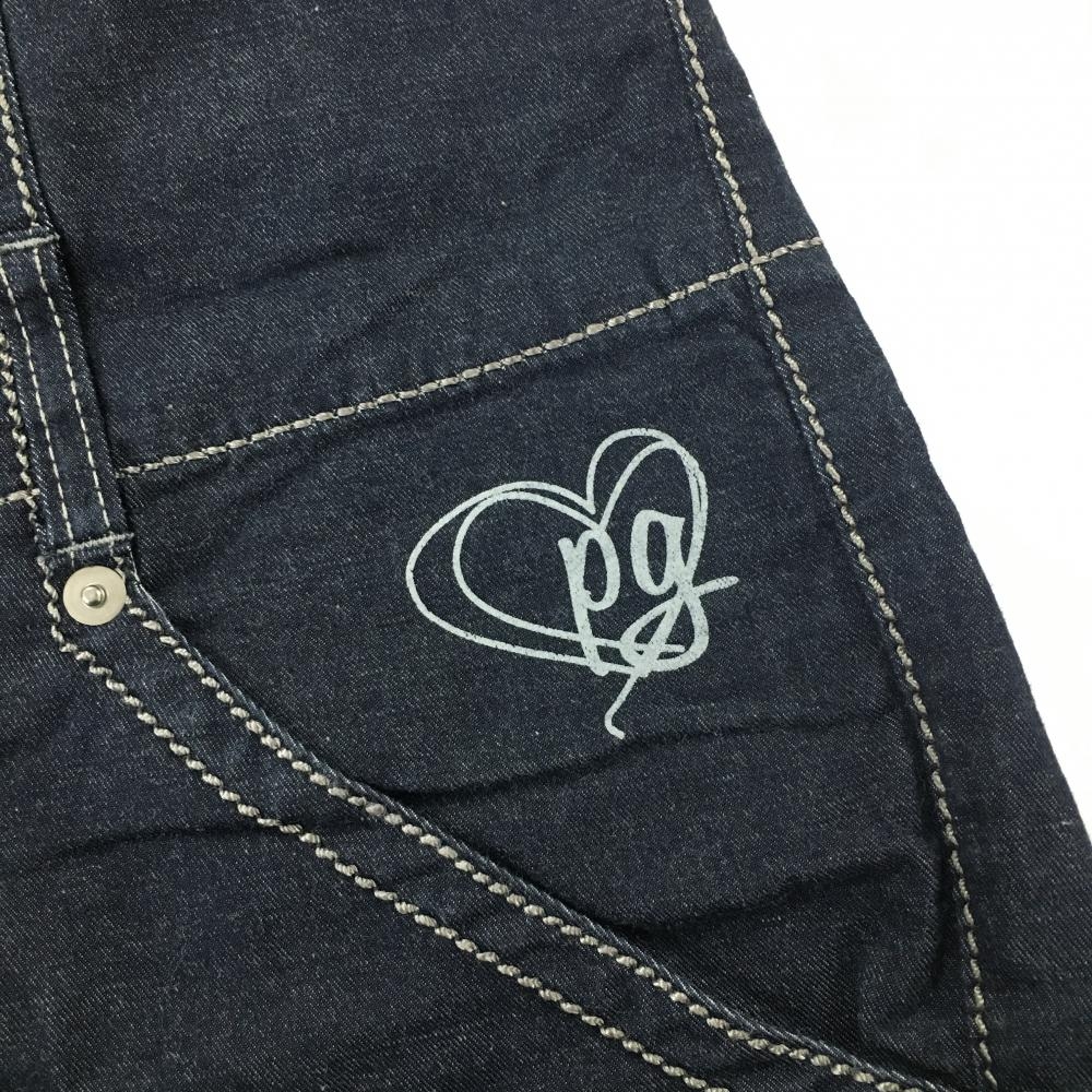 【美品】パーリーゲイツ ハイウエスト半端丈パンツ ネイビー デニム ステッチ レディース 1(M) ゴルフウェア PEARLY GATES