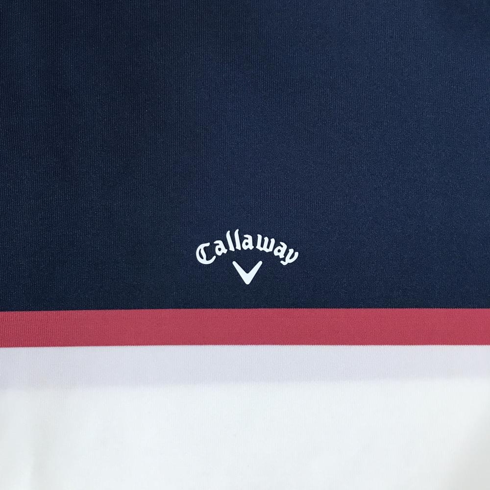 【美品】キャロウェイ レッドレーベル 半袖ハイネックシャツ 白×ネイビー ブロッキング ストレッチ メンズ L ゴルフウェア Callaway
