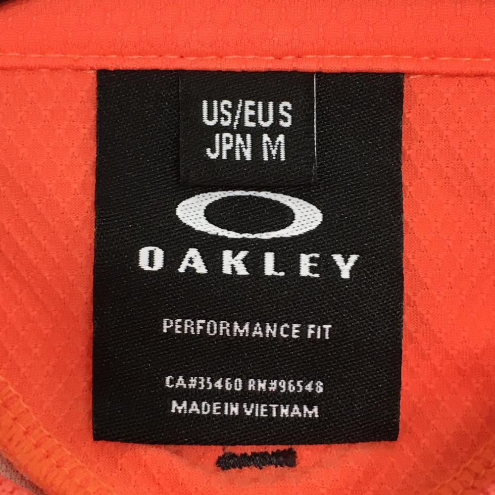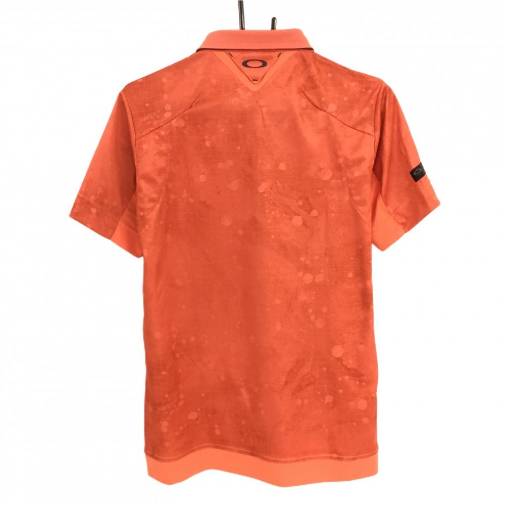 【超美品】オークリー 半袖ポロシャツ オレンジ 総柄地模様 ロゴグレー ティー装着可 メンズ M ゴルフウェア Oakley