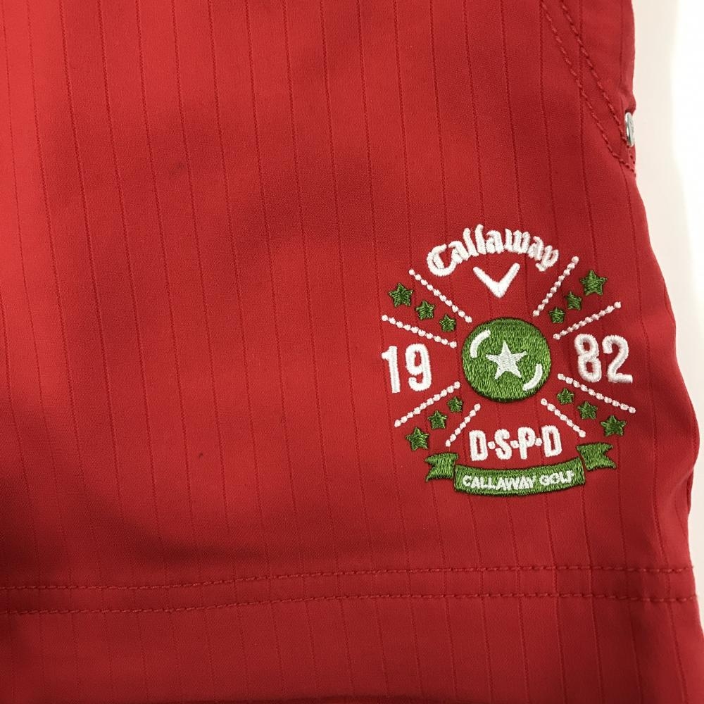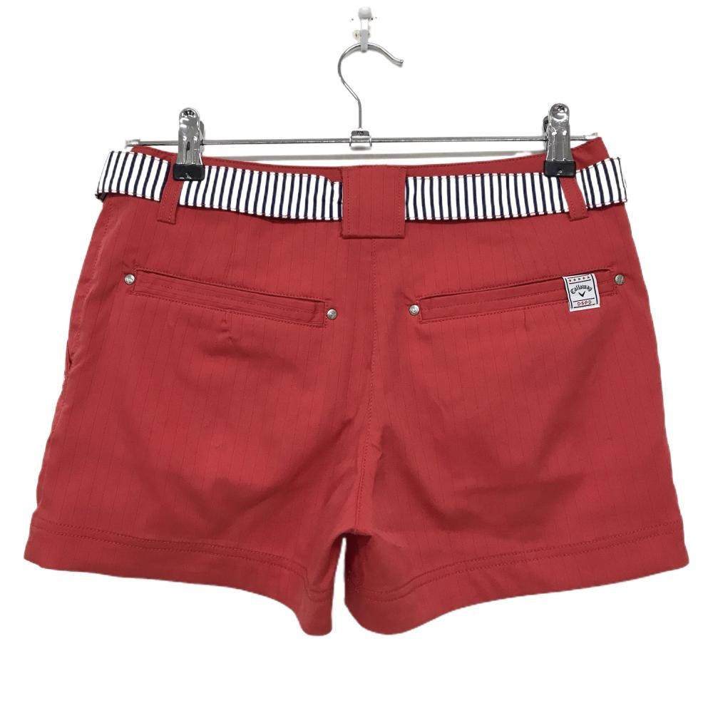 キャロウェイ ショートパンツ レッド×白×ネイビー ストライプ ベルト付 レディース M ゴルフウェア Callaway