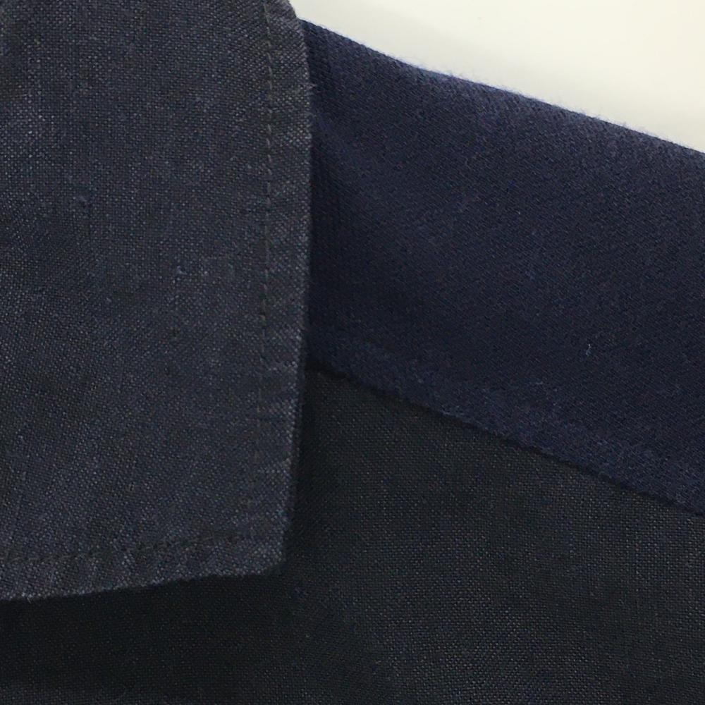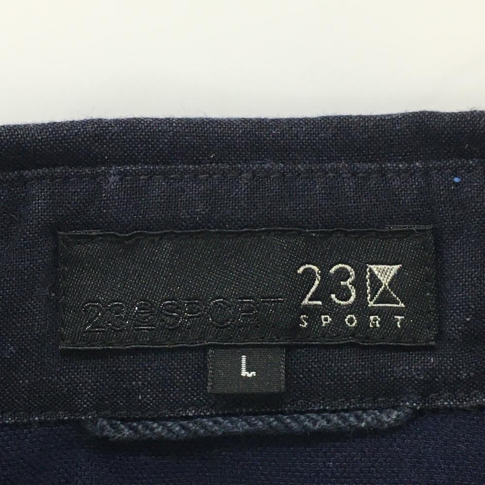 23区スポーツ 半袖シャツ ダークネイビー×ネイビー 胸ポケット 生地切替 麻混 メンズ L ゴルフウェア 23区