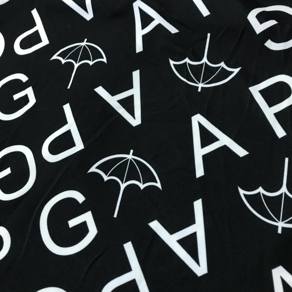 【美品】アーノルドパーマー 半袖ポロシャツ 黒×白 ロゴ・パラソル総柄 メンズ L ゴルフウェア