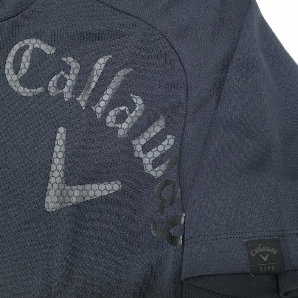 【超美品】キャロウェイ 半袖ハイネックシャツ 黒 凹凸ロゴ メンズ L ゴルフウェア Callaway