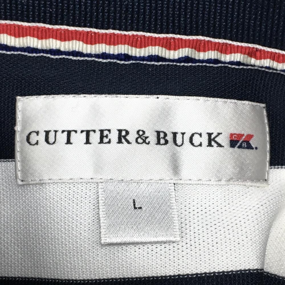カッターアンドバック 半袖ポロシャツ ネイビー×白 ボーダー ロゴ刺しゅう メンズ L ゴルフウェア CUTTER&BUCK
