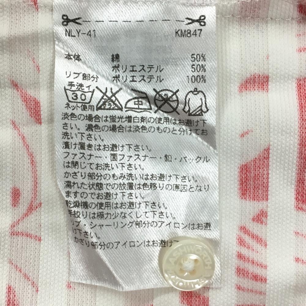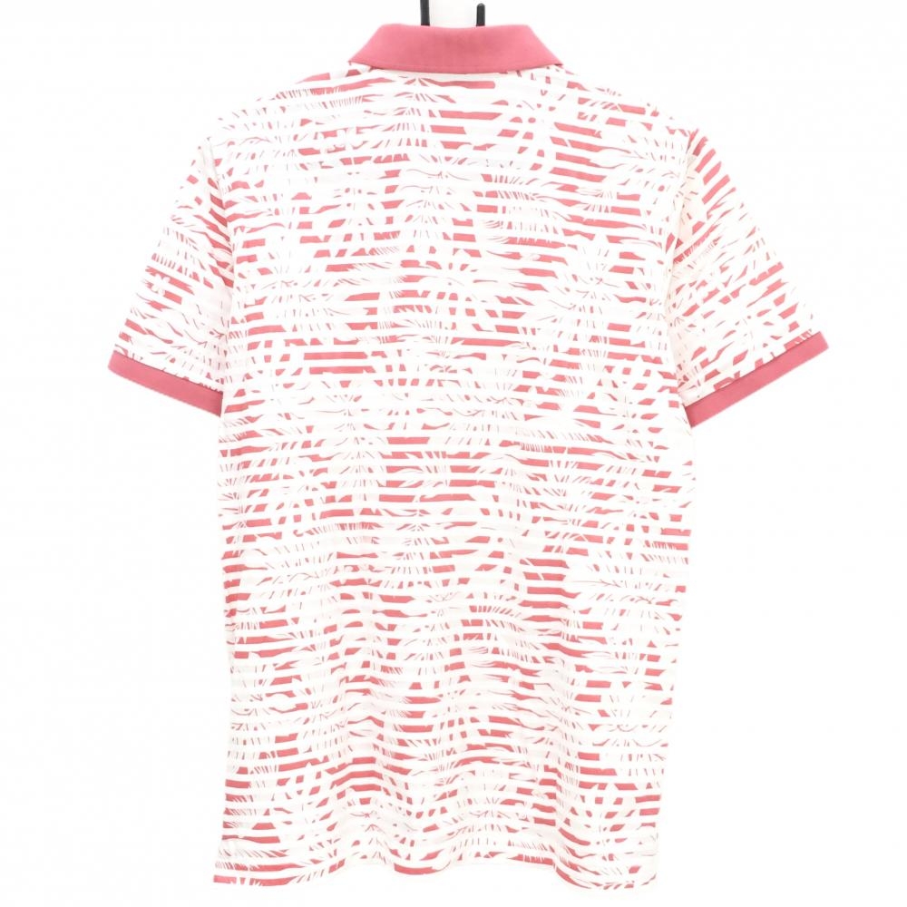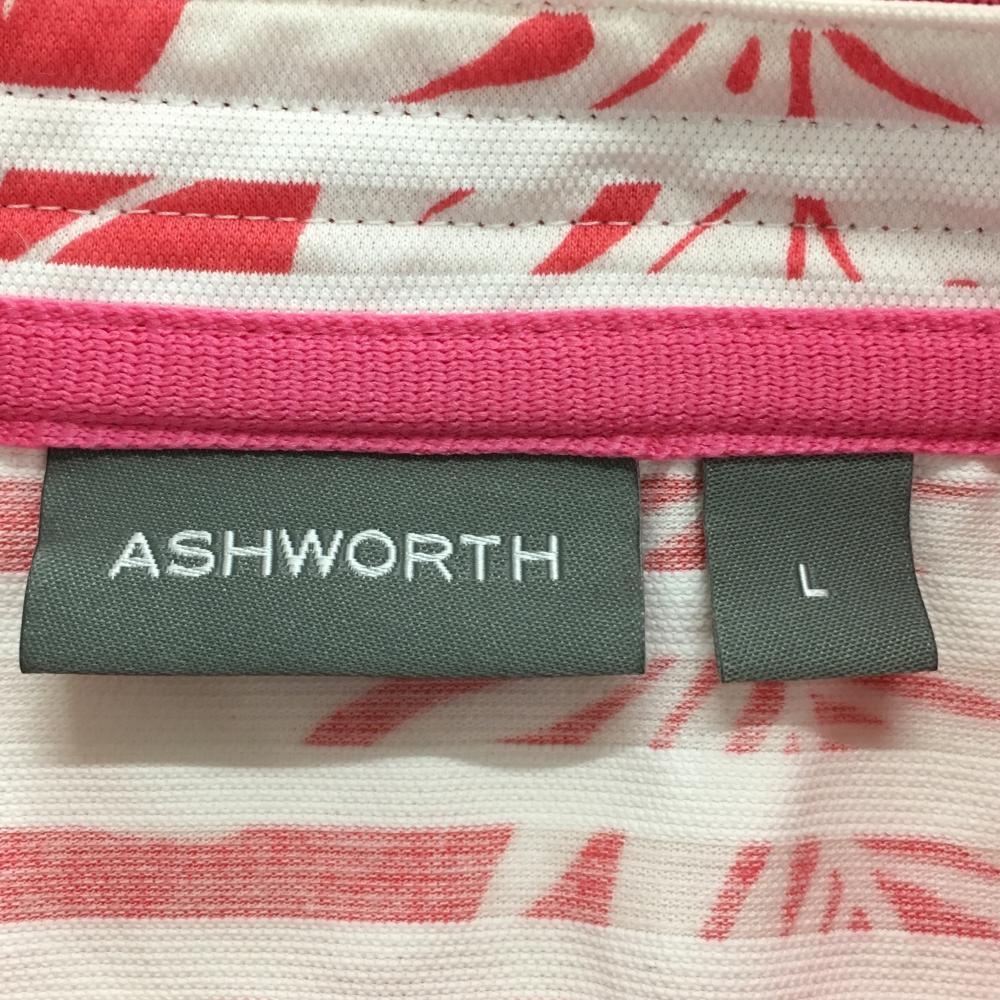 【美品】アシュワース 半袖ポロシャツ ピンク×白 リーフ総柄 ボーダー メンズ L ゴルフウェア ASHWORTH