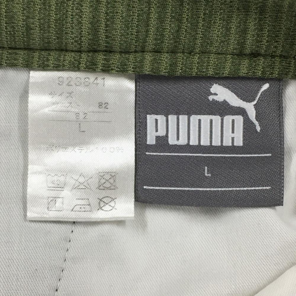 【超美品】プーマ ジョガーパンツ モスグリーン×黒 ボーダー調織生地 裾ロゴ 後ろウエストゴム メンズ L ゴルフウェア PUMA