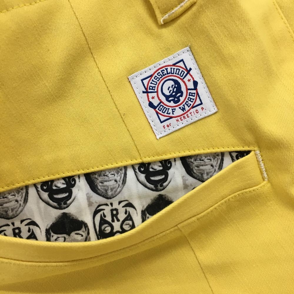 【超美品】ラッセルノ パンツ イエロー シンプル 裏一部ルチャマスク メンズ 4(M) ゴルフウェア RUSSELUNO