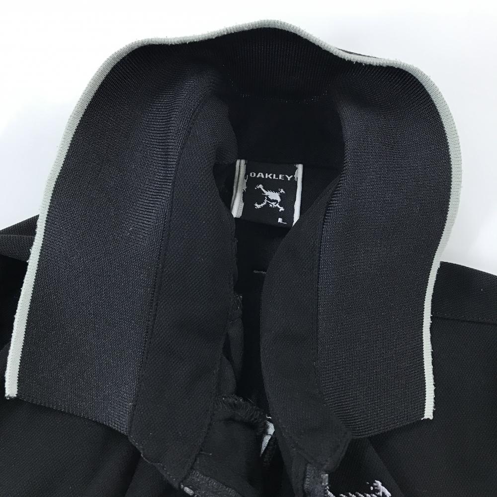 オークリー 半袖ポロシャツ 黒 ロゴ白 袖下メッシュ ハーフジップ ティー装着可 メンズ L ゴルフウェア Oakley