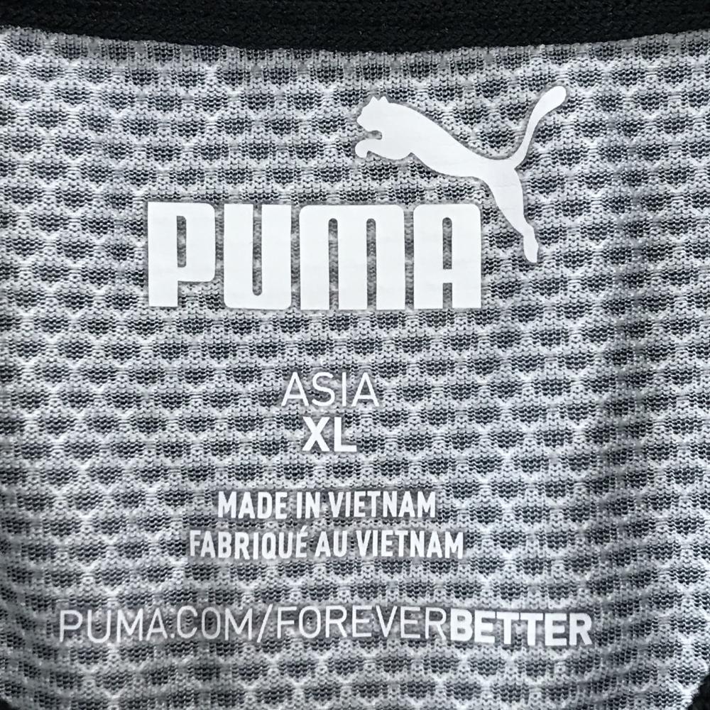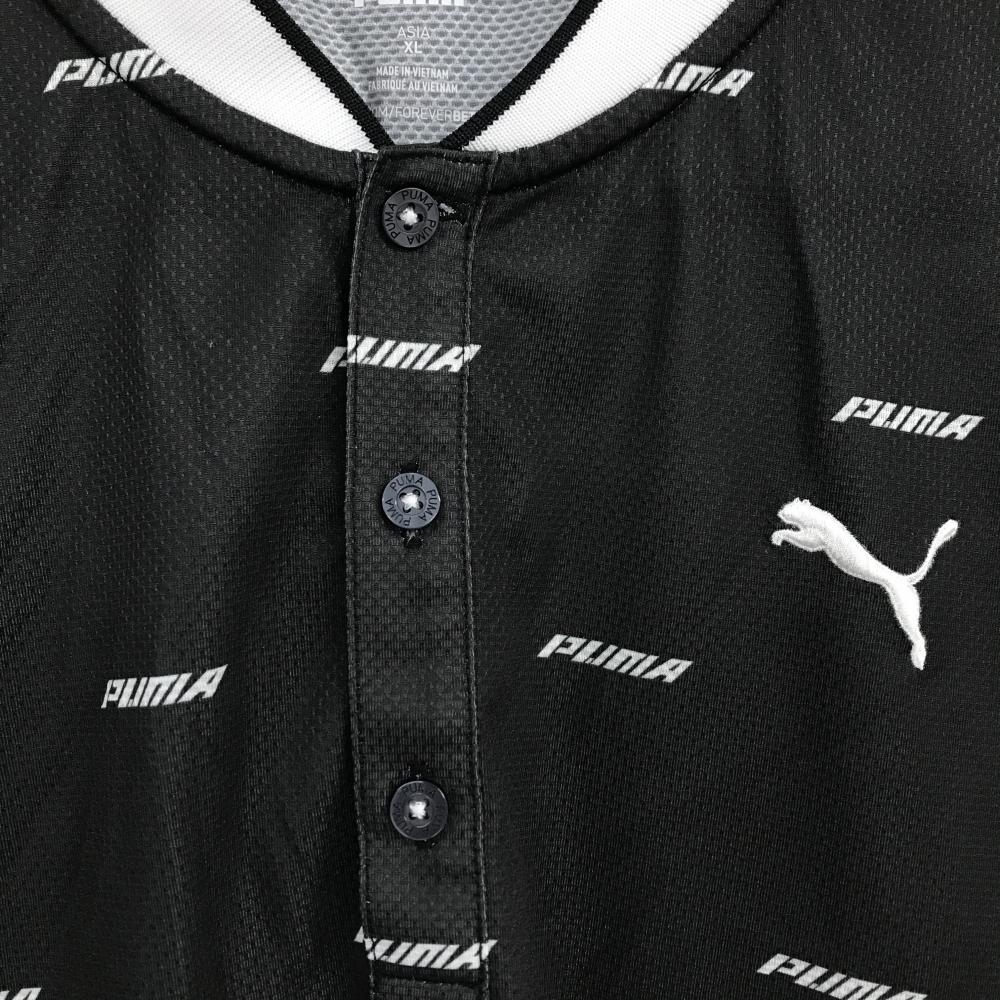 プーマ 半袖ポロシャツ ダークグレー×白 ロゴ英字総柄 スタンドカラー 織生地 メンズ XL ゴルフウェア PUMA