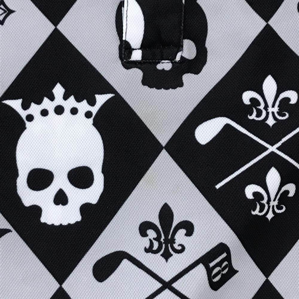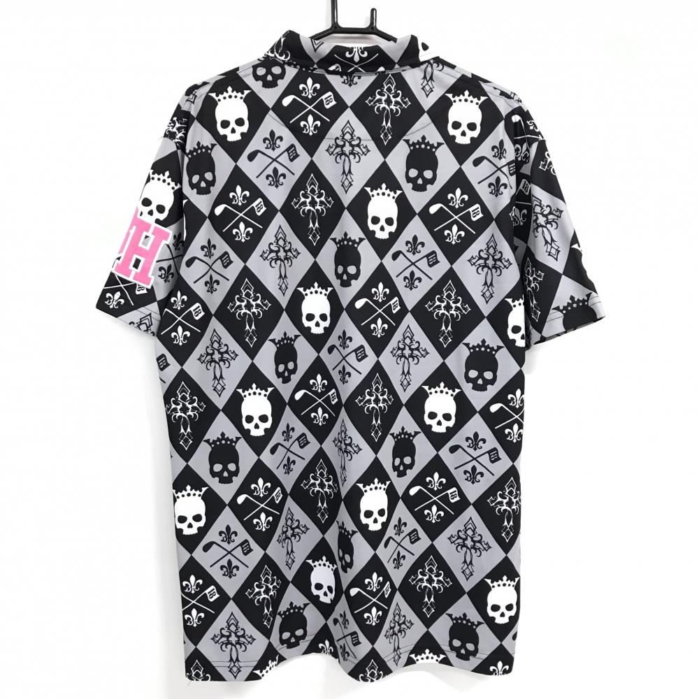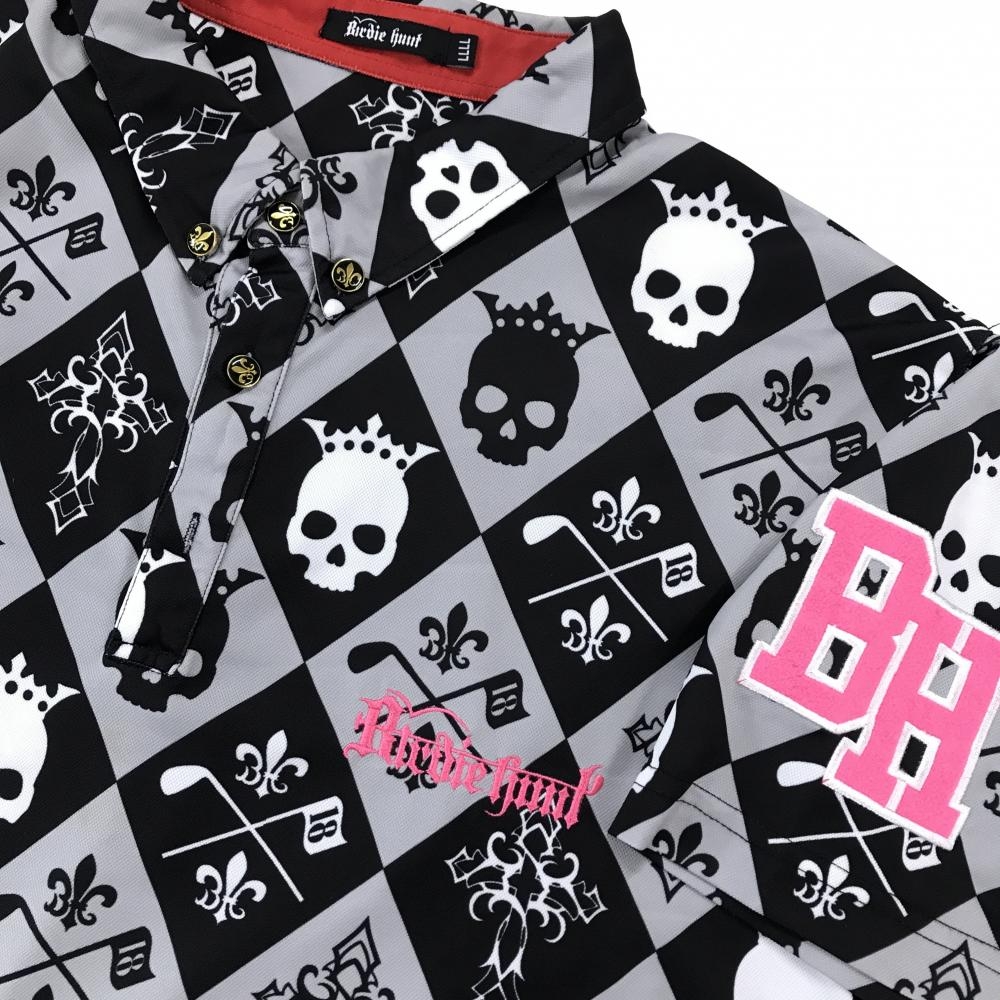 バーディーハント 半袖ポロシャツ グレー×黒 総柄 ダイヤ調 スカル ロゴピンク メンズ LLLL ゴルフウェア 大きいサイズ Birdie hunt