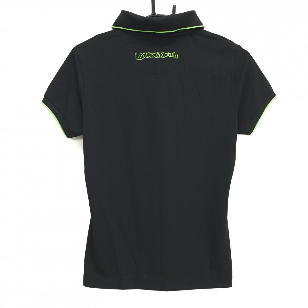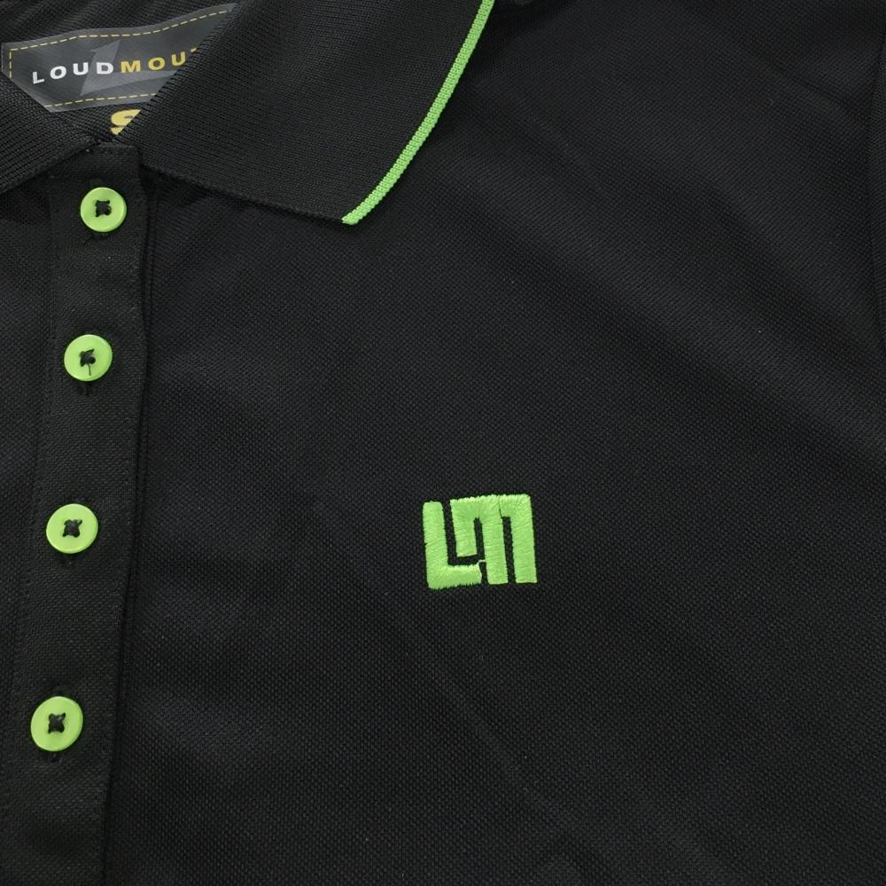 【超美品】ラウドマウス 半袖ポロシャツ 黒×蛍光グリーン ロゴ刺しゅう 無地 レディース S ゴルフウェア LOUDMOUTH