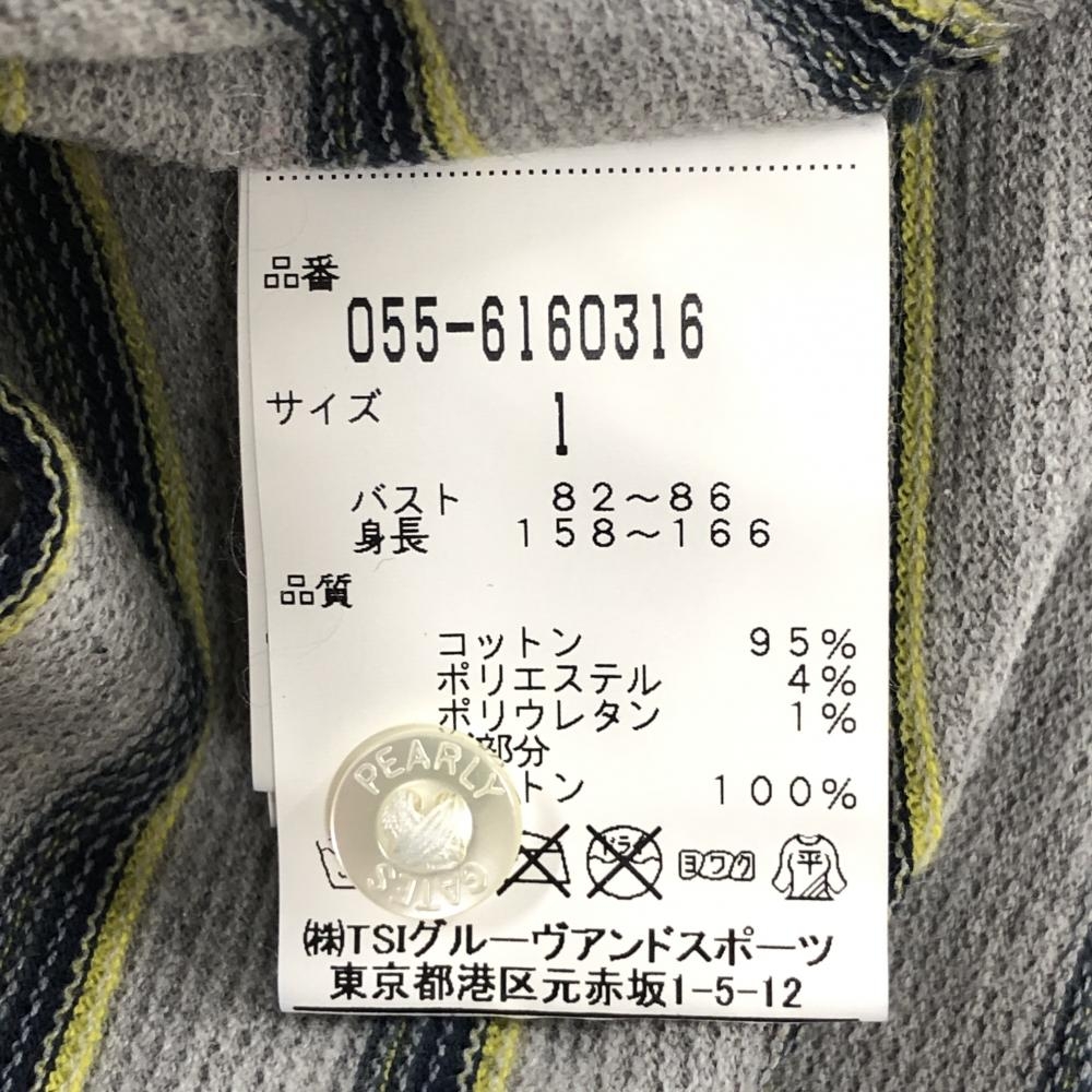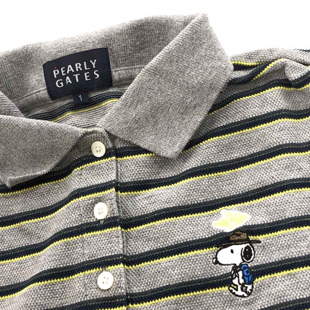 【超美品】パーリーゲイツ×PEANUTS 半袖ポロシャツ グレー×ネイビー ボーダー スヌーピー レディース 1(M) ゴルフウェア PEARLY GATES